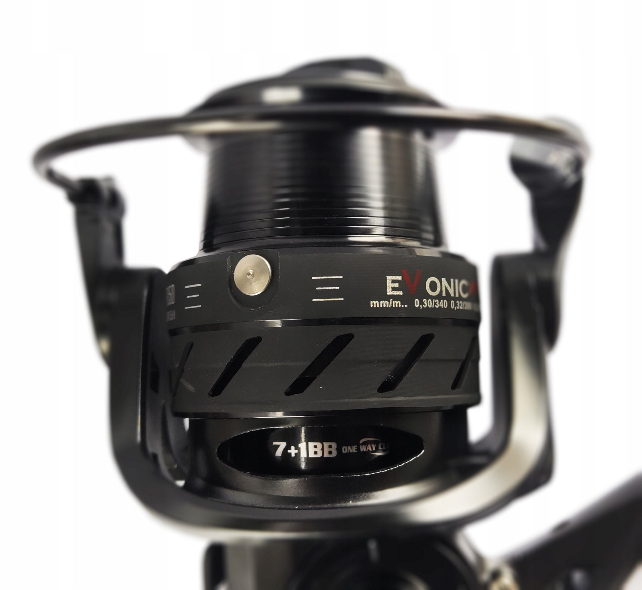 Материалом, из которого изготовлена катушка EVONIC, является прочный и жесткий графит. Основная шпуля – дюралюминиевая, запасная – графитовая. Шестерня изготовлена из нержавеющей стали.