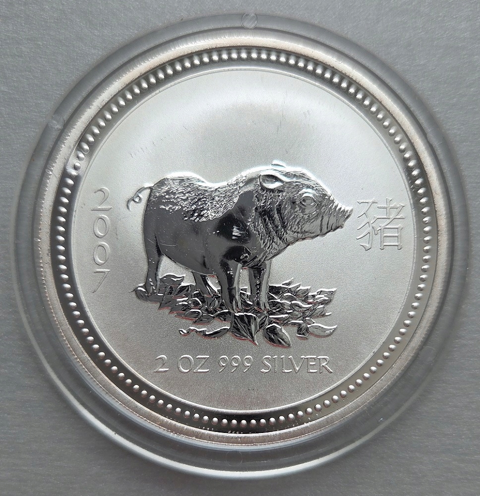 Оригинальная монета Года Свиньи, 2 унции, 2007 г. (Год Свиньи), из первой серии LUNAR I.