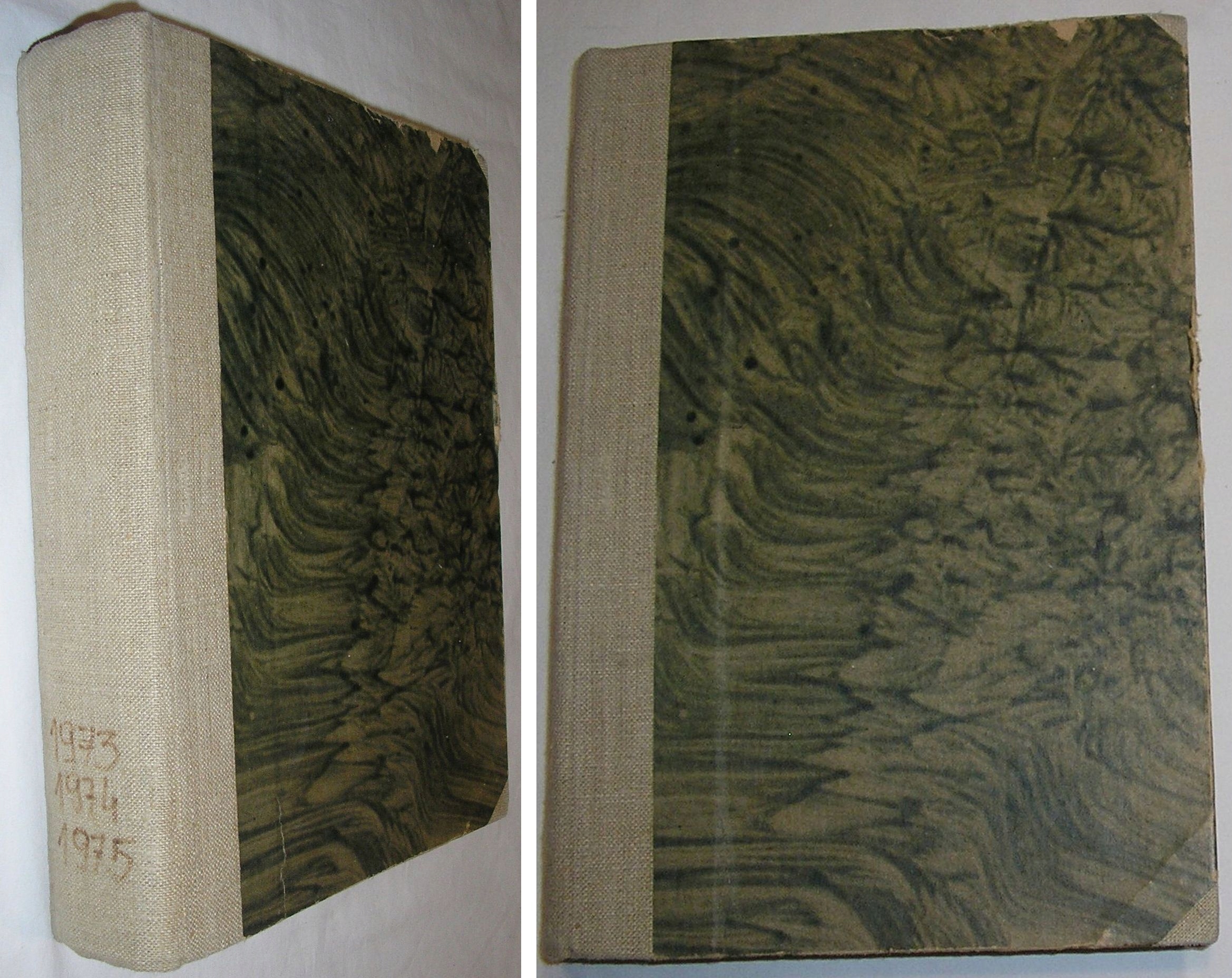 После многих лет повреждения края переплета, местные потертости переплетной бумаги