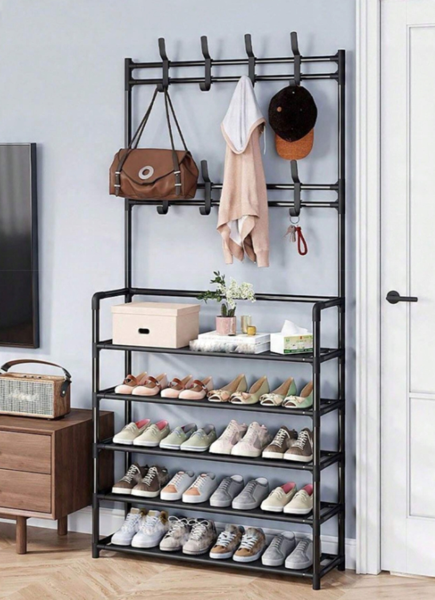 ВЕШАЛКА ДЛЯ ОДЕЖДЫ С ПОЛКАМИ ДЛЯ ОБУВИ