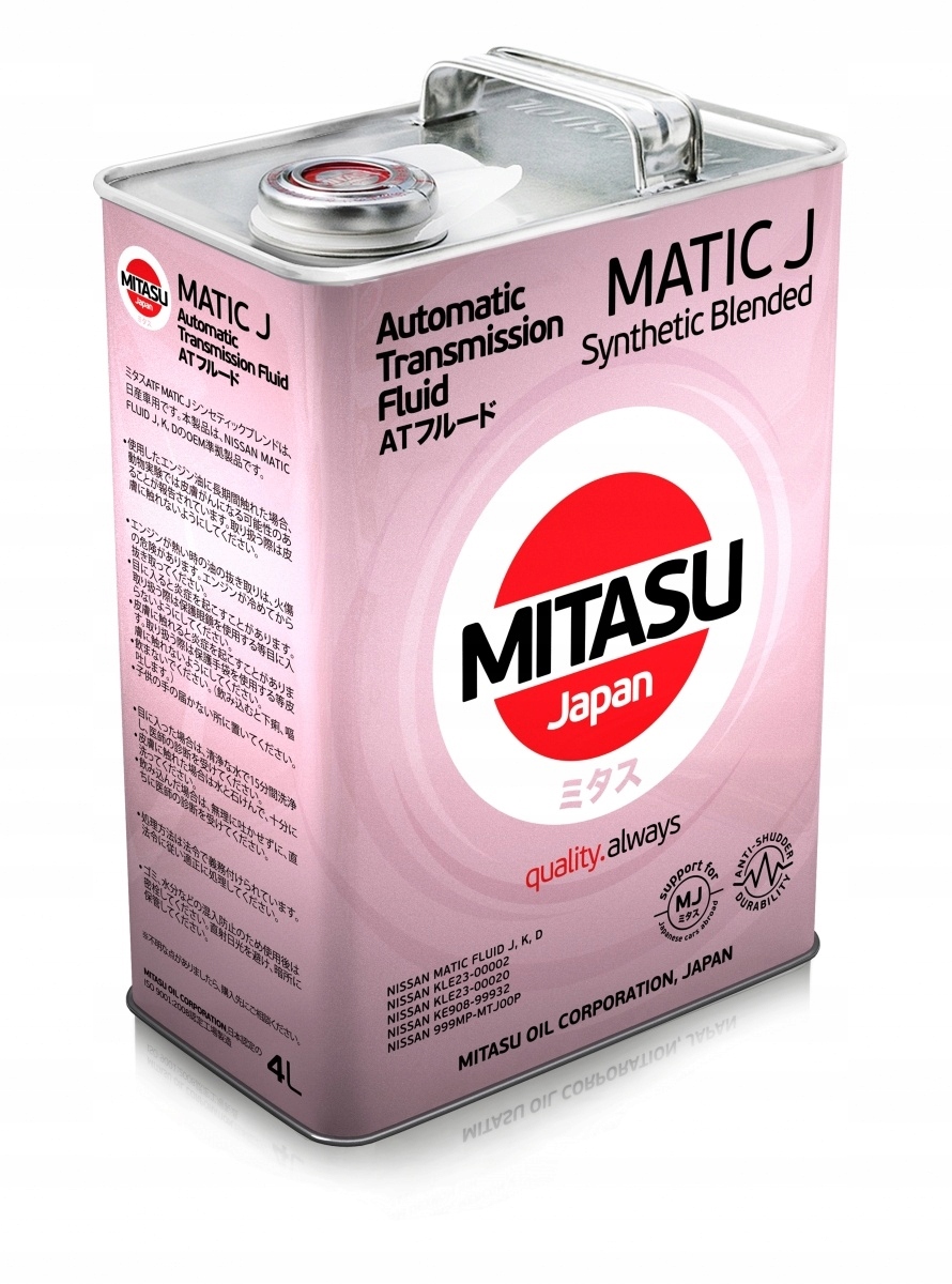 mitasu atf matic j Синтетическая смешанность -это высококачественная синтетическая коробка передач для автоматических коробок передач, предназначенных для бренд -транспортных средств, предназначенных для бренд -транспортных средств. Nissan, в котором рекомендуется Nissan Matic J Fluid, K. Продукт обладает отличными антивибрационными свойствами и соответствует международным требованиям Nissan и Jatco для Nissan Matic Matic Fluid J. Продукт красный. Он предназначен для автоматических коробок для передач Jatco, используемых в автомобилях Nissan, Infiniti и Renault. Его также можно использовать в автоматических коробках передач других производителей автомобилей, в которых Nissan Matic J, K, D.