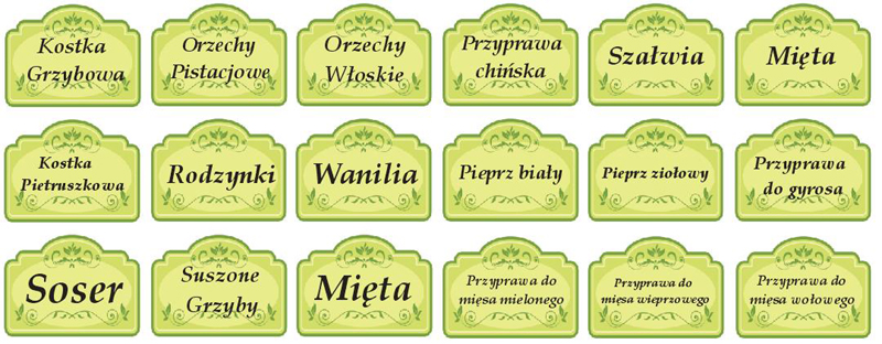 На нашем аукционе по цене 11,99 PLN, до 142 наклеек с именами специй, в то время как на других аукционах такие установленные затраты 25. Если в списке нет специй, мы приглашаем вас на другой аукцион, на котором мы предлагаем 200 наклеек с большим количеством специй.