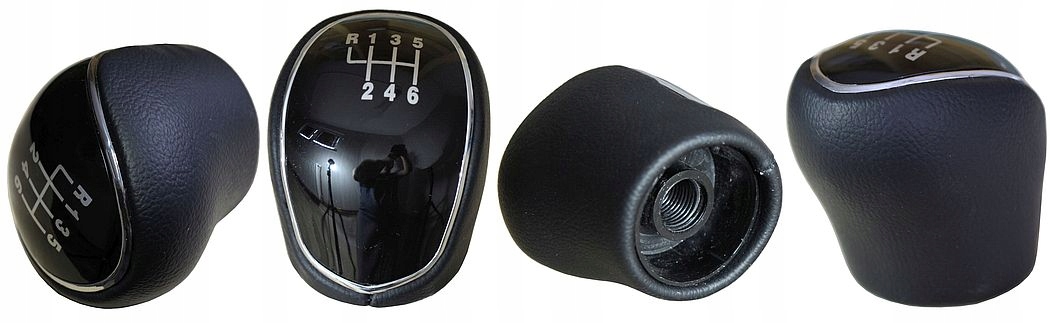 - 6-ступенчатая версия + R сверху, черная накладка, хромированный обод, белая схема передач.