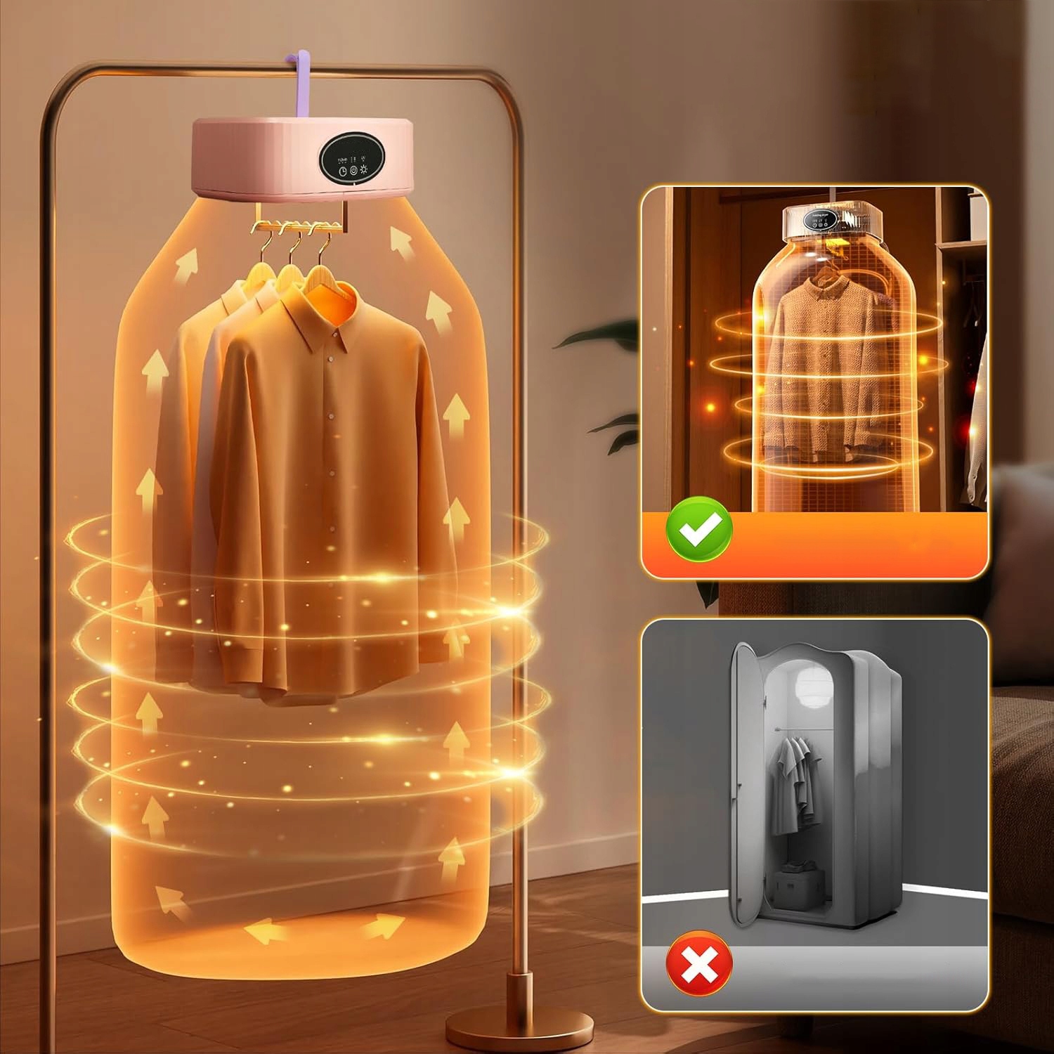 - С портативными конденсаторными сушилками шумные процессы сушки остались в прошлом. Уровень шума при работе составляет всего 45 дБ, поэтому вы можете наслаждаться бесшумной стиркой.