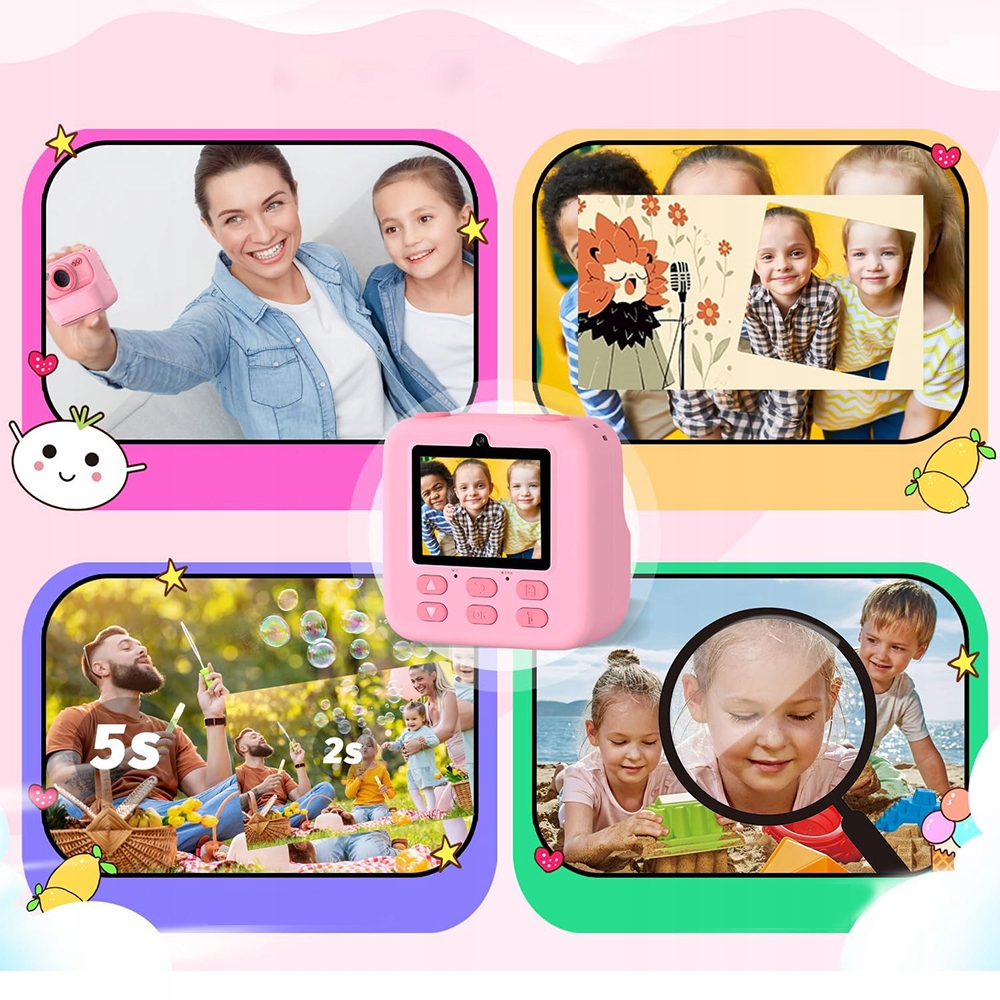 Эта цифровая камера для детей предлагает функцию мгновенной печати, которая позволяет сохранять цветные фотографии на SD-карту и быстро печатать черно-белые фотографии. Наша камера предлагает два режима печати: оттенки серого и матричный, а также три глубины цвета. Благодаря передовой технологии термопечати камера не содержит тонера и BPA, что делает ее безопасной для детей. Помогает документировать радостное развитие вашего ребенка, развивает его воображение и творческие способности, а также улучшает взаимодействие между родителями и детьми.