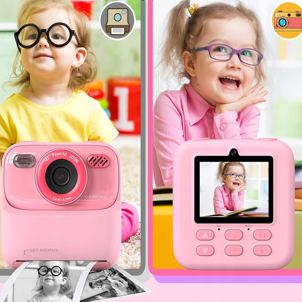 МГНОВЕННАЯ КАМЕРА ДЛЯ ДЕТЕЙ. ПРИНТЕР 32 ГБ, БОЛЬШОЙ ЭКРАН, 2,4 ДЮЙМА, 1200 МАЧ.