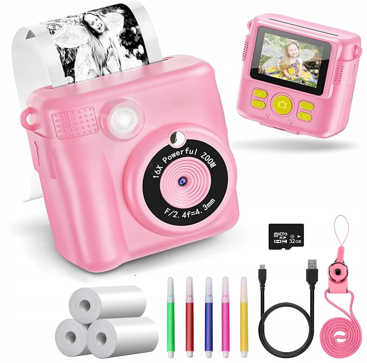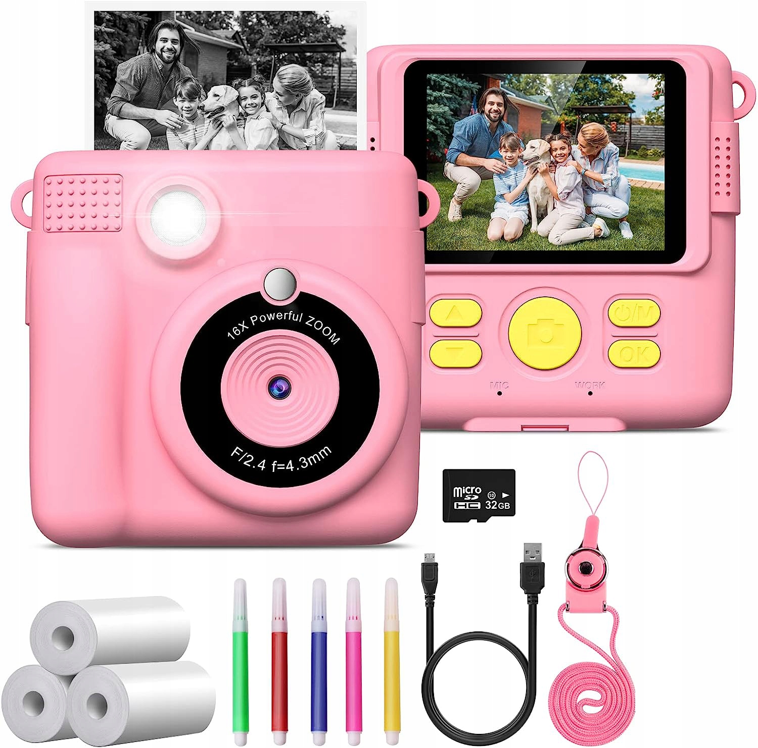 ДЕТСКАЯ КАМЕРА 1080P, МГНОВЕННАЯ КАМЕРА, ЭКРАН 2,4 ДЮЙМА, С БУМАГОЙ ДЛЯ ПЕЧАТИ И КАРТОЙ 32 ГБ, ДЕТСКАЯ ЦИФРОВАЯ КАМЕРА С ЦВЕТНЫМИ РУЧКАМИ, ПОДАРОК ДЛЯ ДЕТЕЙ 3–12 ВОЗРАСТОВ