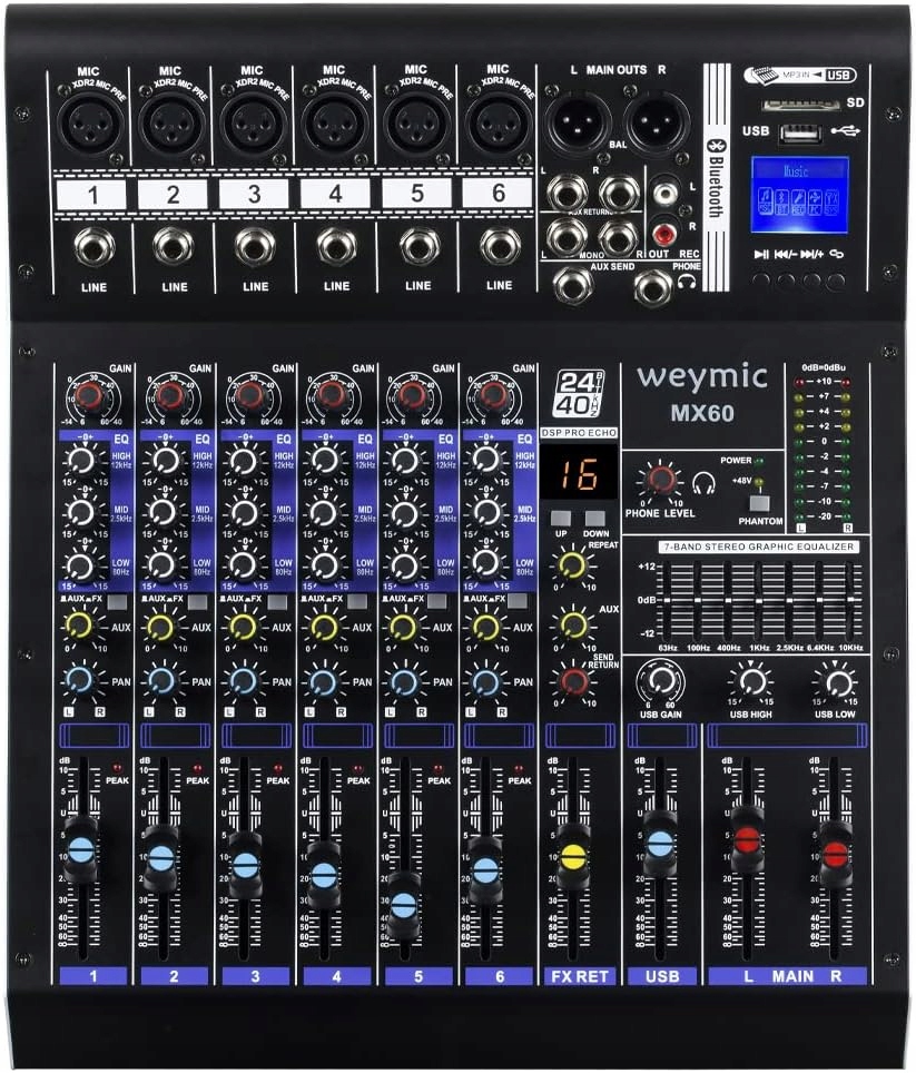 Миксер Weyymic MX-60 6 Channel BT MP3 FX DSP +48V