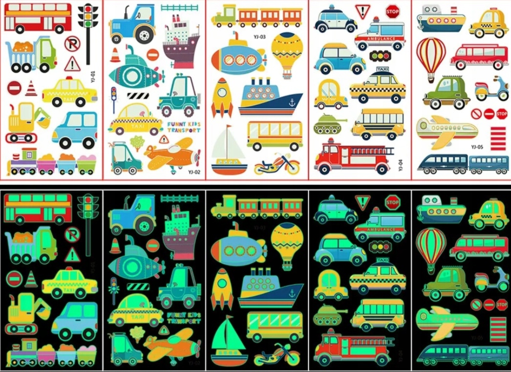 промытые татуировки 5 листов - после экспозиции они сияют в темноте - различные дизайны, чтобы выбрать