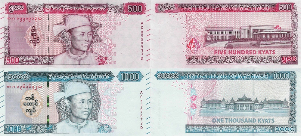 Mjanma Birma Myanmar 2020 zestaw 2 szt. 500+1000 Kyat - Pick NEW UNC