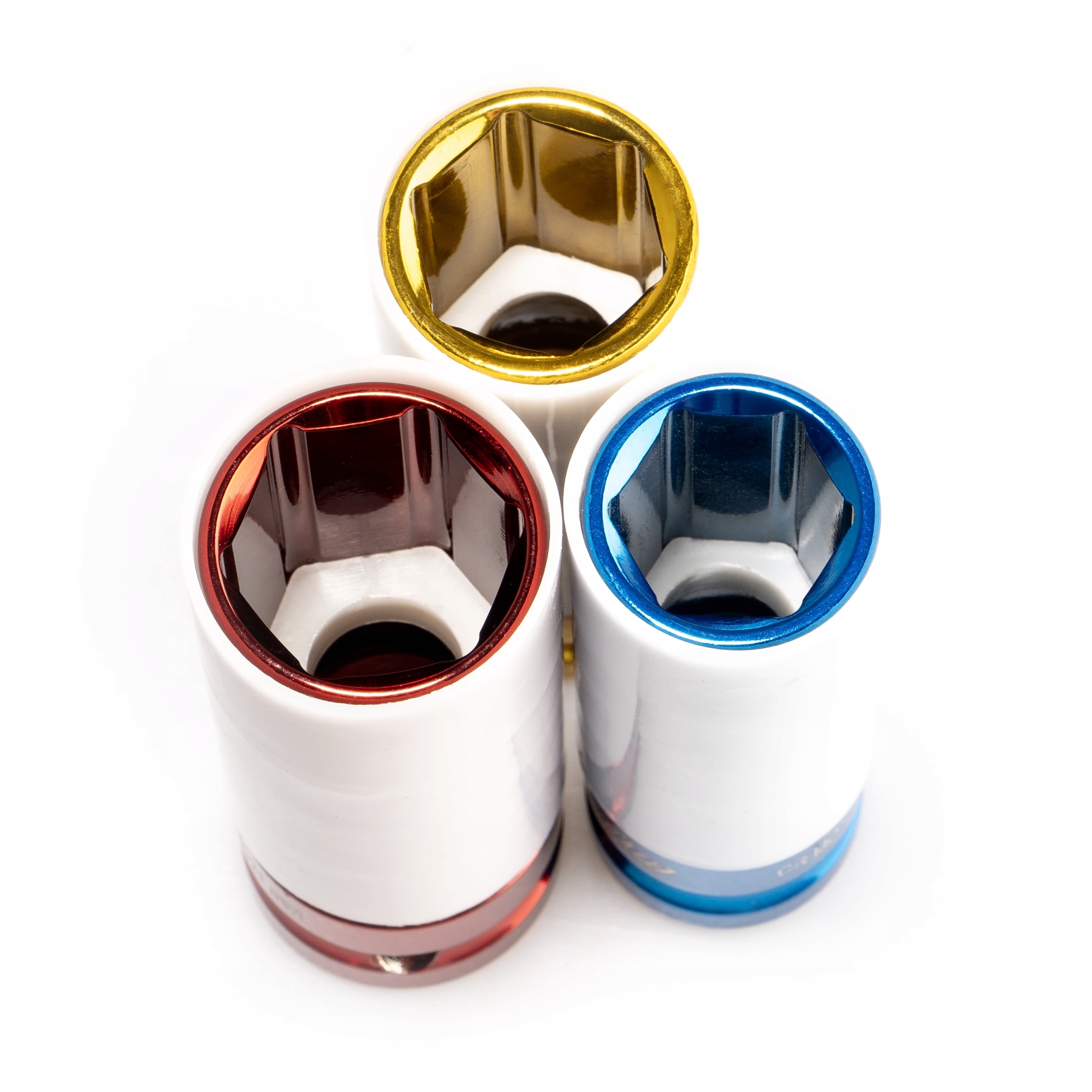 В комплекте: ударные головки 1/2 дюйма, 6-гранные, длина 17 | 19 | 21 мм. Изготовлен из хромомолибденовой стали CrMo. Предназначен для работы пневматическим гайковертом и для работы в тяжелых условиях. Они гарантируют высокую ударопрочность. Идеально подходит к винту. После нанесения они не оставляют рыхлости. Аккуратно изготовлен, покрыт металлическим слоем, защищающим от царапин. Три цветных колпачка в прочной пластиковой упаковке.