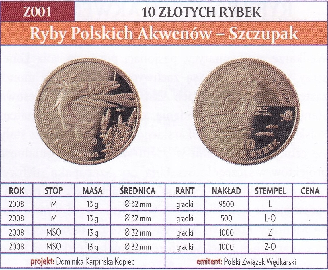 MK001 - 10 Zlotys Fish - щука - Оксид - 2008 - Крезова Мята
