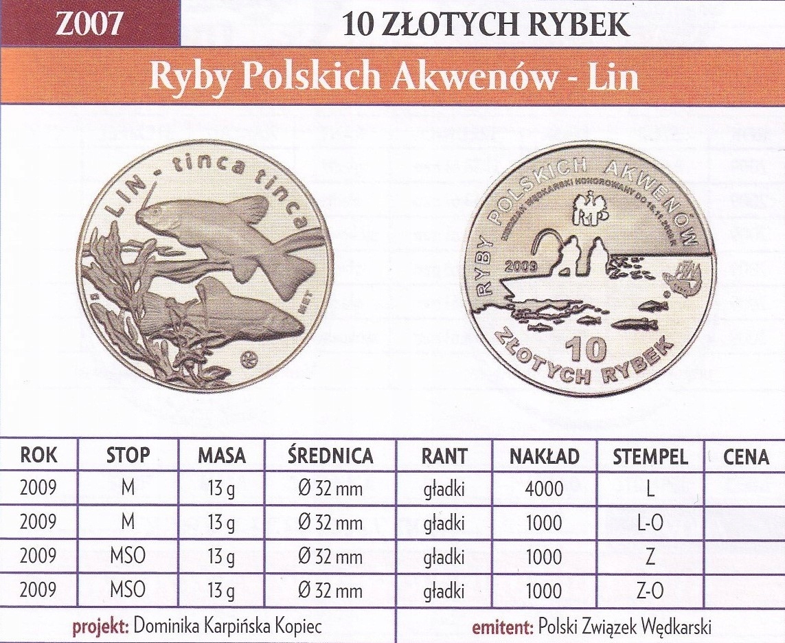 MK007 - 10 Zlotys Fish - Lin - 2009 - Mint Kresowa