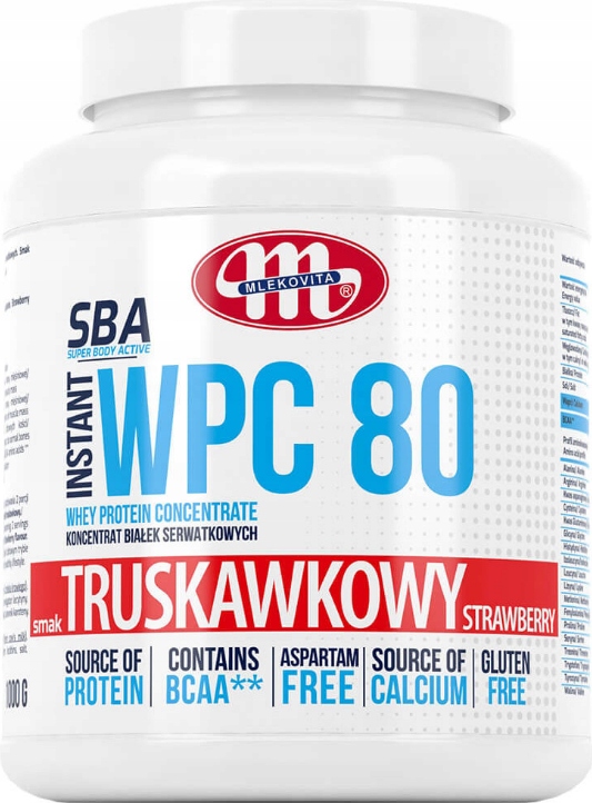 SBA MLEKOVITA WPC 80% INSTANT — это концентрат сывороточного белка высочайшего качества, который является богатым источником полноценных белков (включая аминокислоты BCAA), которые, среди прочего: способствуют росту и поддержанию мышечной массы, а также кальция, необходимого для крепких костей и здоровья. зубы. Не содержит аспартама и глютена. Дополнительно он предлагается в быстрорастворимом варианте, благодаря чему отличается отличной растворимостью, а добавление натурального лецитина подсолнечника уменьшает пенообразование продукта (лецитин входит в состав практически каждой клетки человеческого организма; стимулирует нервную систему, поддерживает процессы концентрации и памяти, принимает участие в обменных процессах, поддерживает усвоение жирорастворимых витаминов, замедляет процессы старения).