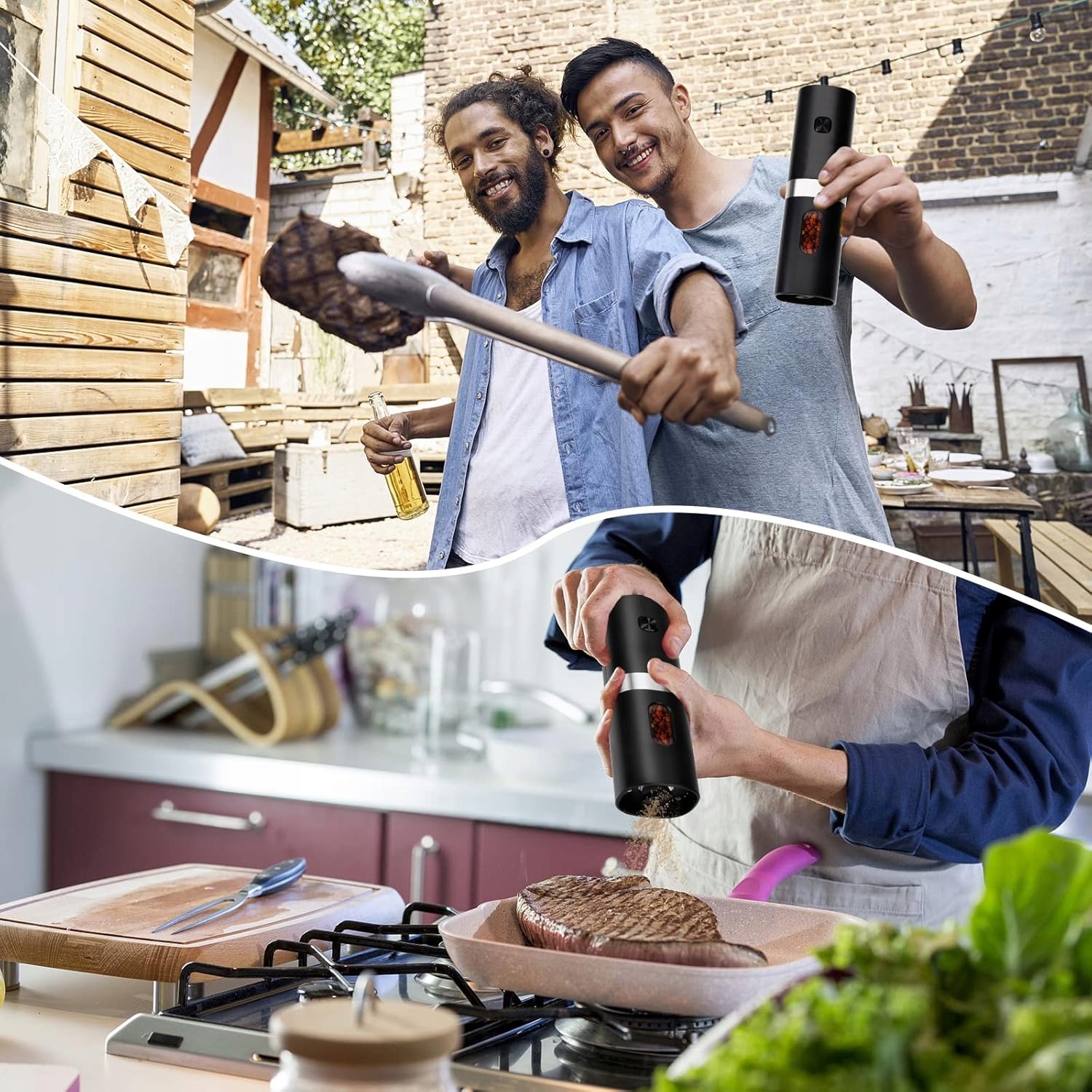 🫛🫛【Простота в использовании】Просто нажмите кнопку включения/выключения, и перец или соль будут равномерно разбросаны по всей кухне. Полностью расслабьте другую руку и избегайте артрита, это более удобно и дружелюбно, чем традиционные ручные шлифовальные машины. Эта электрическая мельница для перца подходит для всех видов специй и идеально подходит для кухни, садового барбекю и ресторанов.