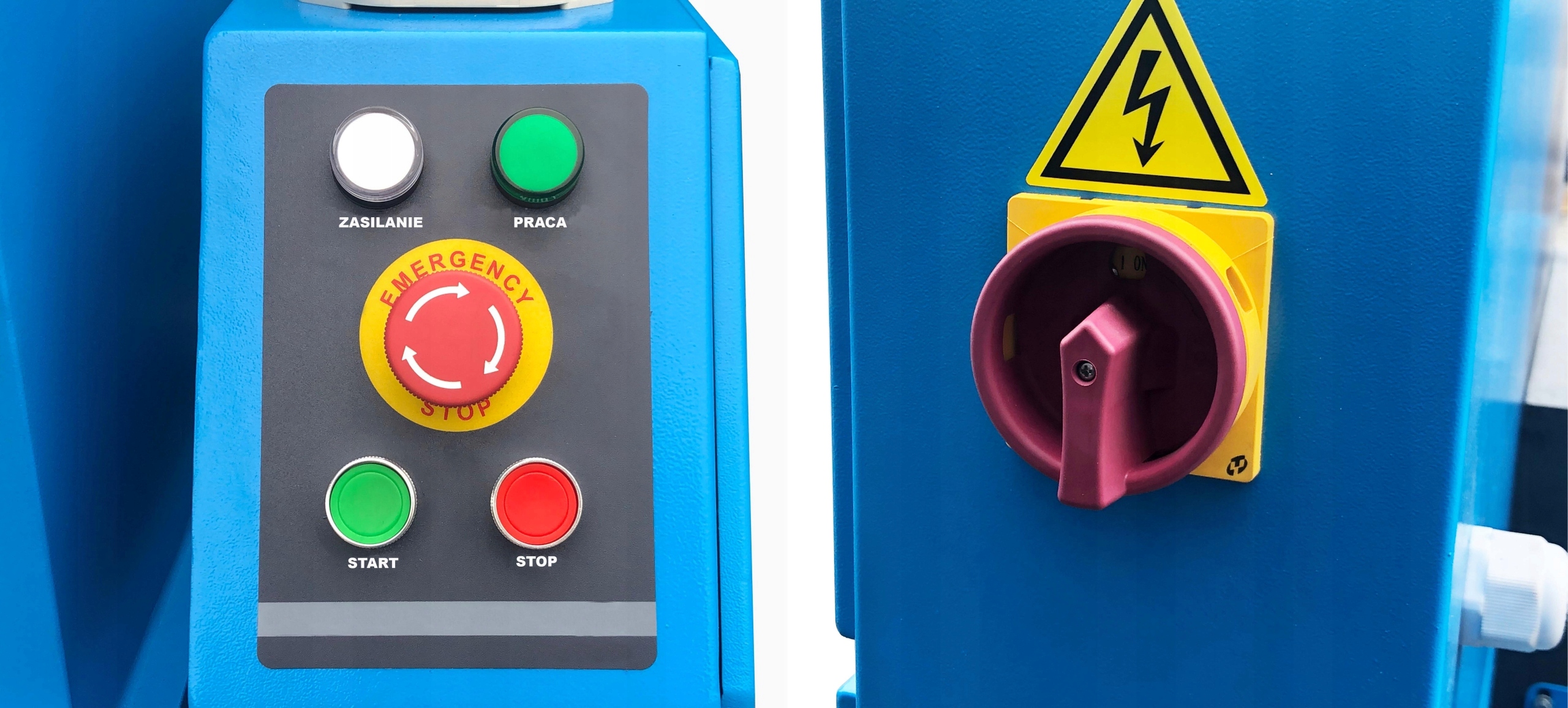 Машина оснащена главным выключателем, аварийным выключателем и понятной панелью управления.