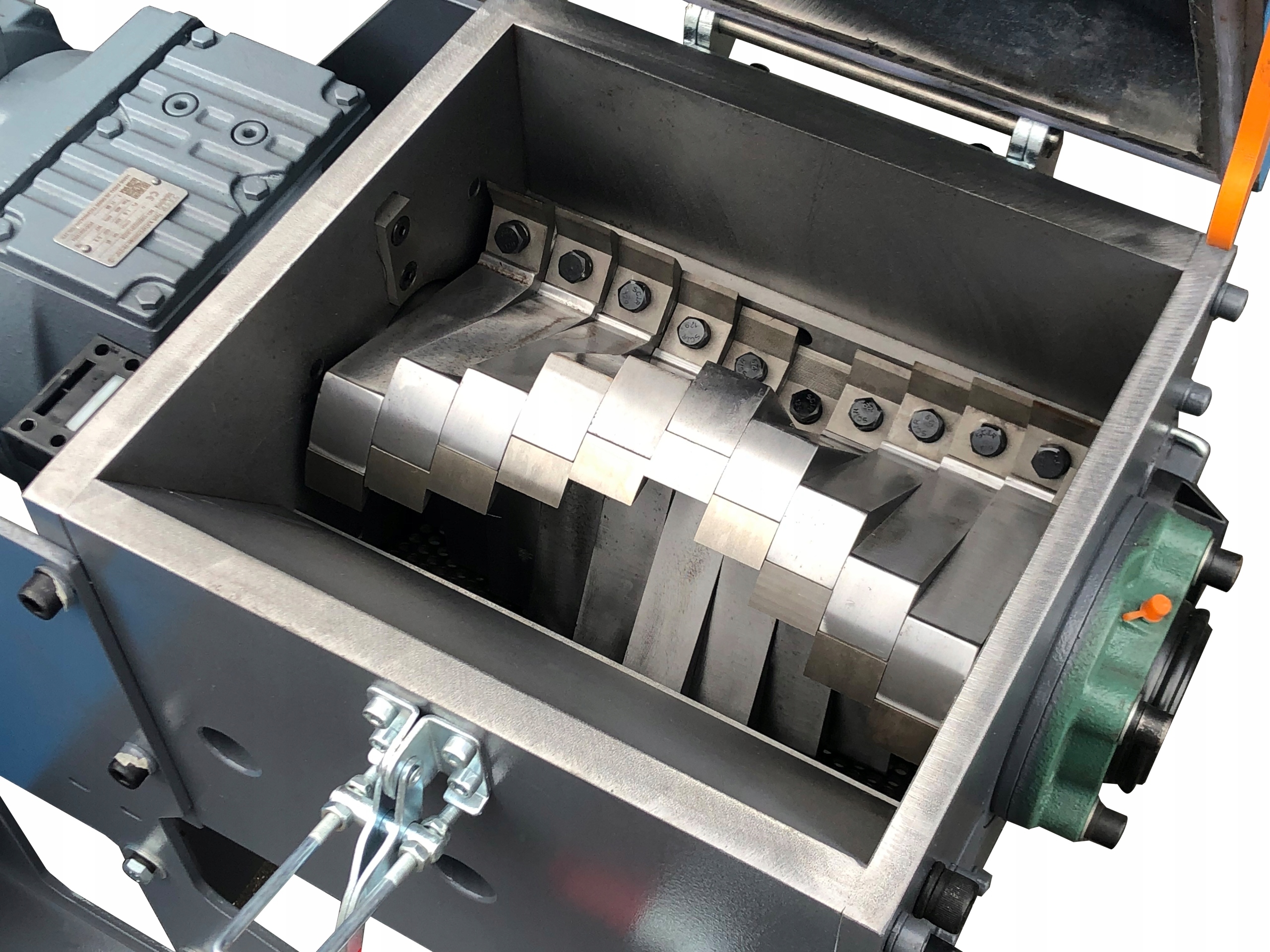 ☑️ На режущем валу расположены 30 режущих ножей, взаимодействующих с двумя неподвижными ножами, расположенными на крышке режущей камеры.