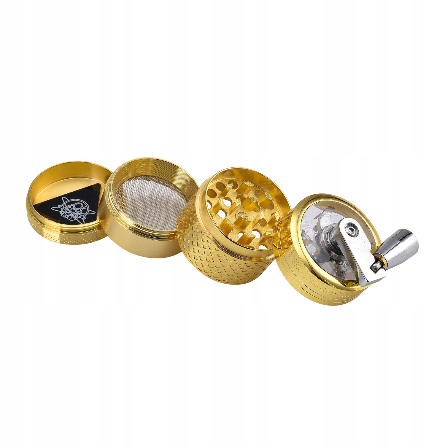 MŁYNEK METALOWY GRINDER DO ZIÓŁ Z KORBKĄ CBD 4cm 4 częściowy MIX