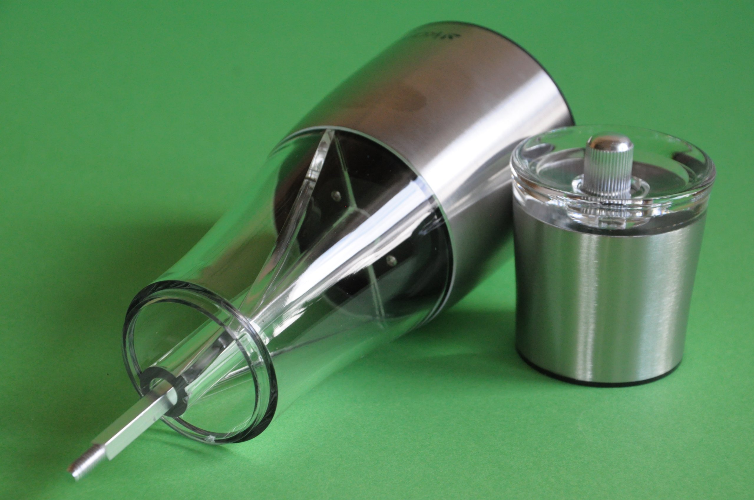 Поворот вправо измельчает соль, поворот влево — перец.