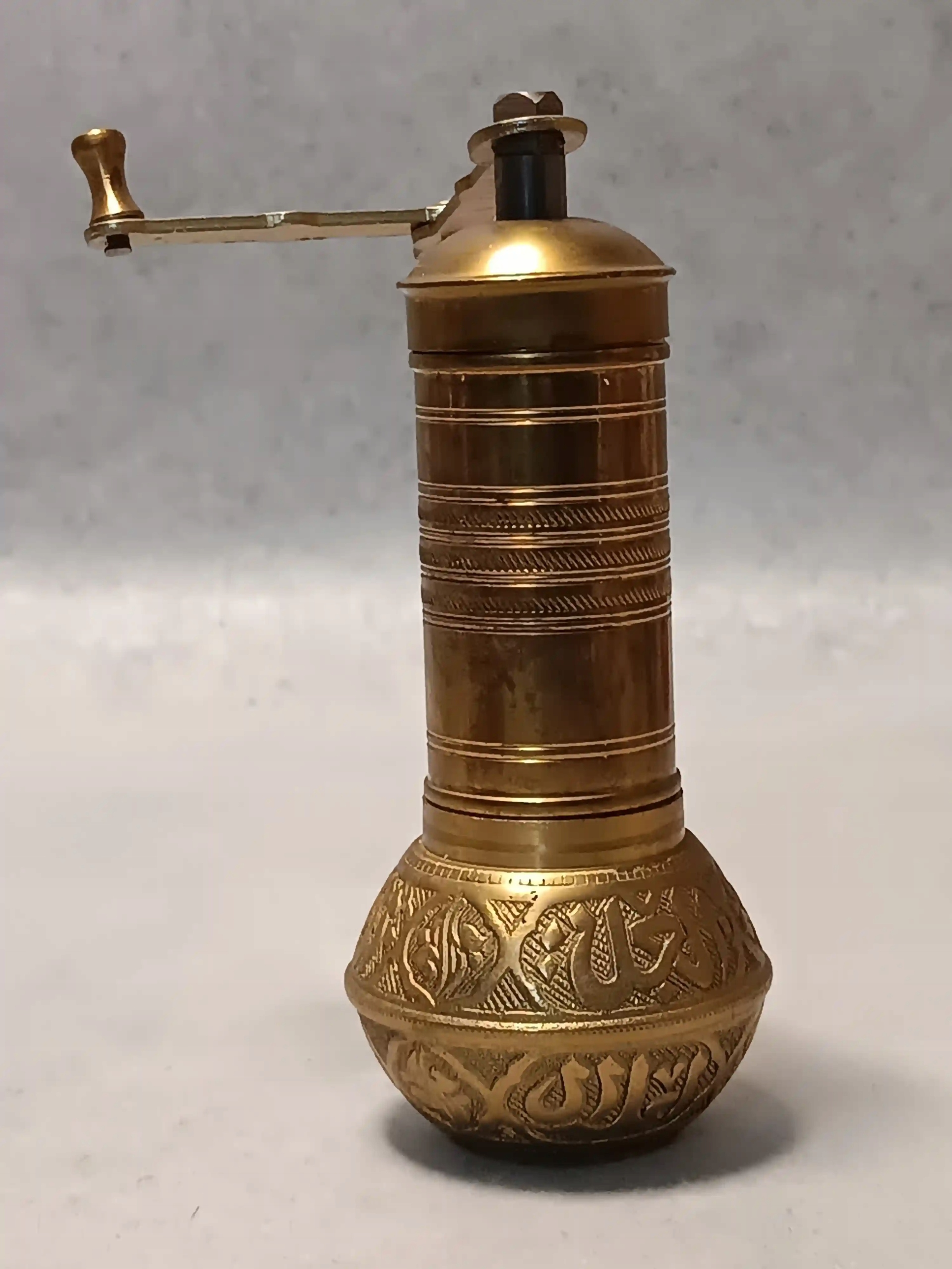 Предлагаю на продажу латунную ручную кофемолку или мельницу для перца с рукояткой, которая является уникальным элементом восточного ремесла.