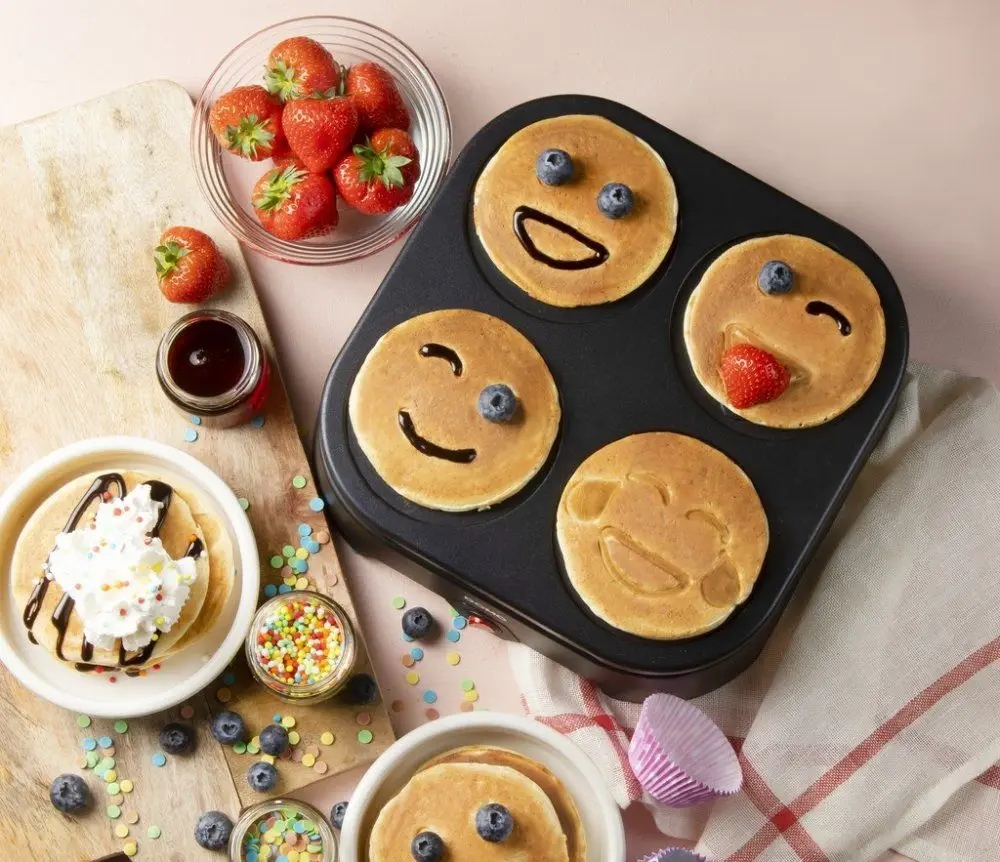 С этой блинницей вы исполните все желания своих детей! Идеально подходит для удовлетворения небольшого аппетита: в нем есть 4 «улыбающиеся» сковороды для приготовления веселых блинов! Так когда же следующая блинная вечеринка?