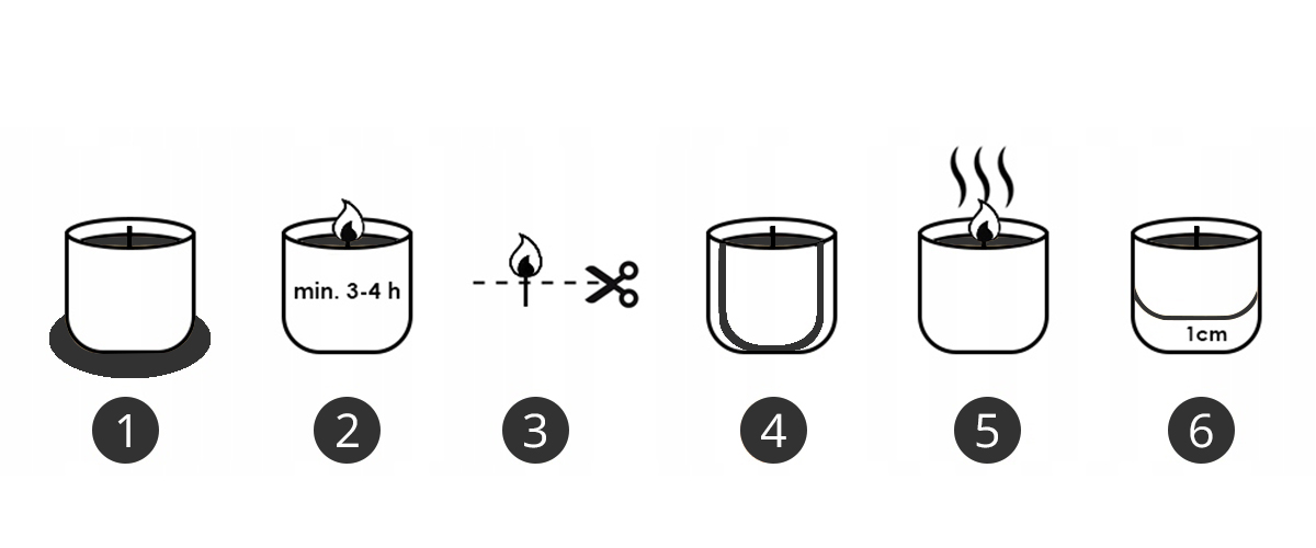 6⃣ Когда воск тает -, чтобы сохранить полную безопасность, заканчивают сжигание свечи, когда около 1 см воска остается на ее дне. Восковые остатки внизу являются нормальным явлением и избегают повреждения стеклянной упаковки.