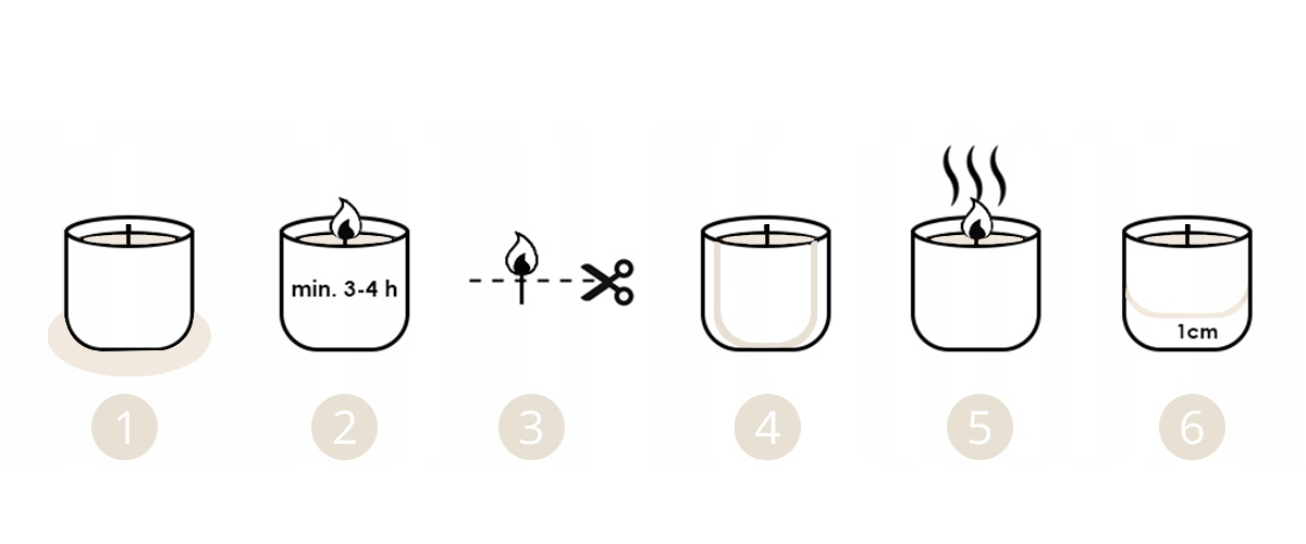 3️⃣ ДЛИНА ФИТИЛЯ - Позаботьтесь о свечах, обрезав фитиль после второго горения. Благодаря этому мы получим красивое и гармонично горящее пламя.