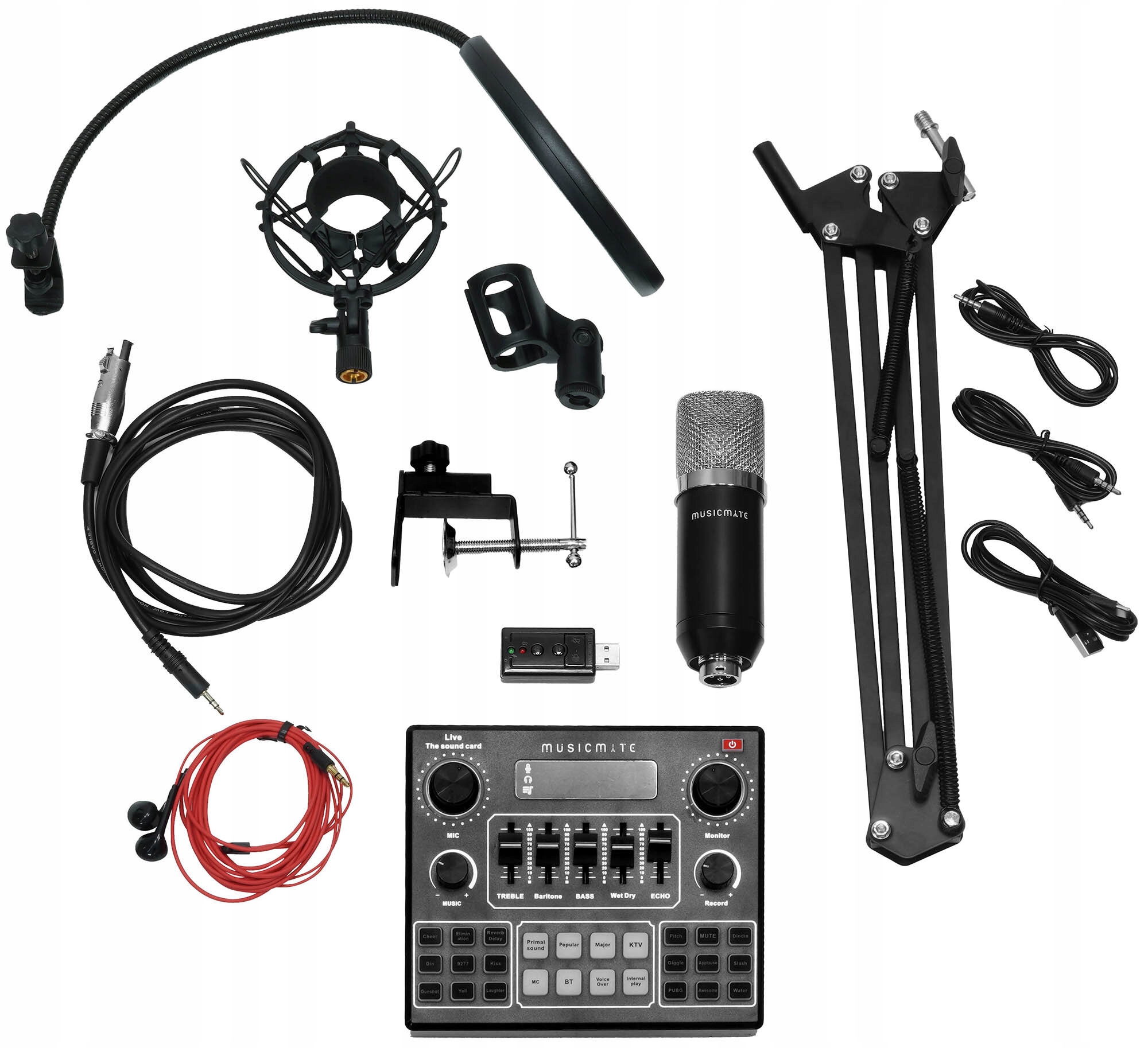 ✅ Оборудование: микрофон, регулируемая микрофонная рычаг, антилокок -ручка, кабель Aux (разъем 3,5 мм), поп -фильтр, губка микрофона, кабель XLR, ручка микрофона, USB -адаптер, проводные наушники, настольное крепление