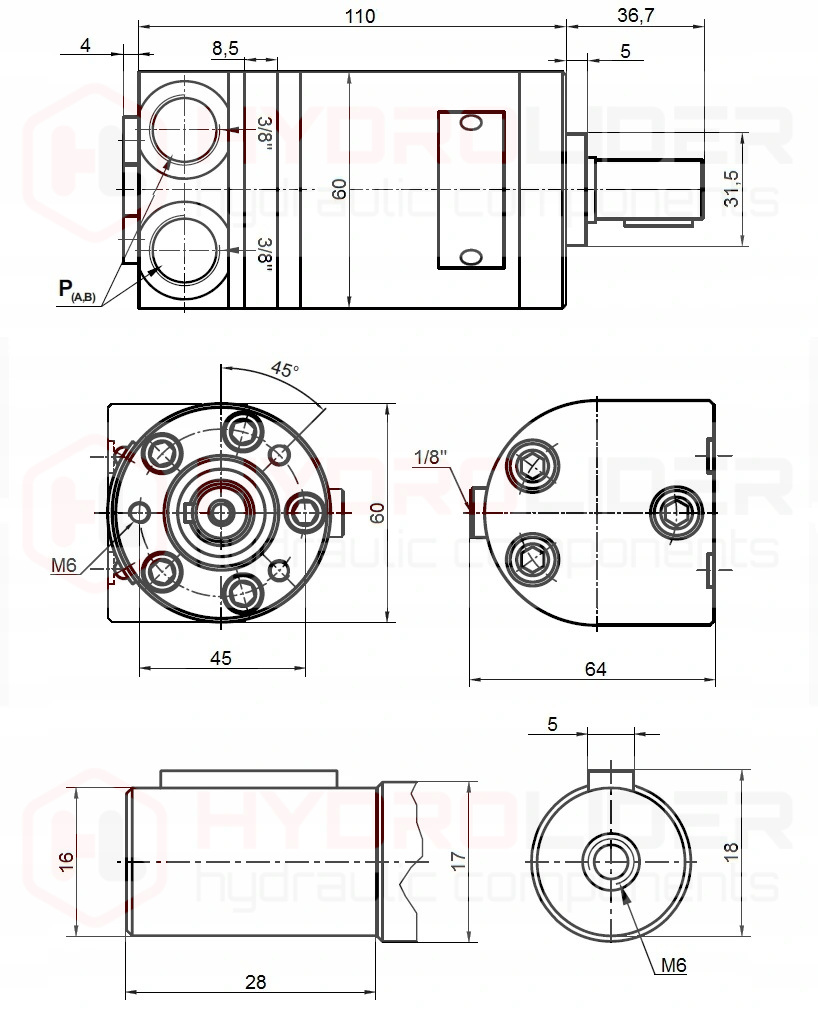 MMS 20 2,4 кВт 20 л/мин 1000obr/мин M+S Гидравлический гидравлический двигатель