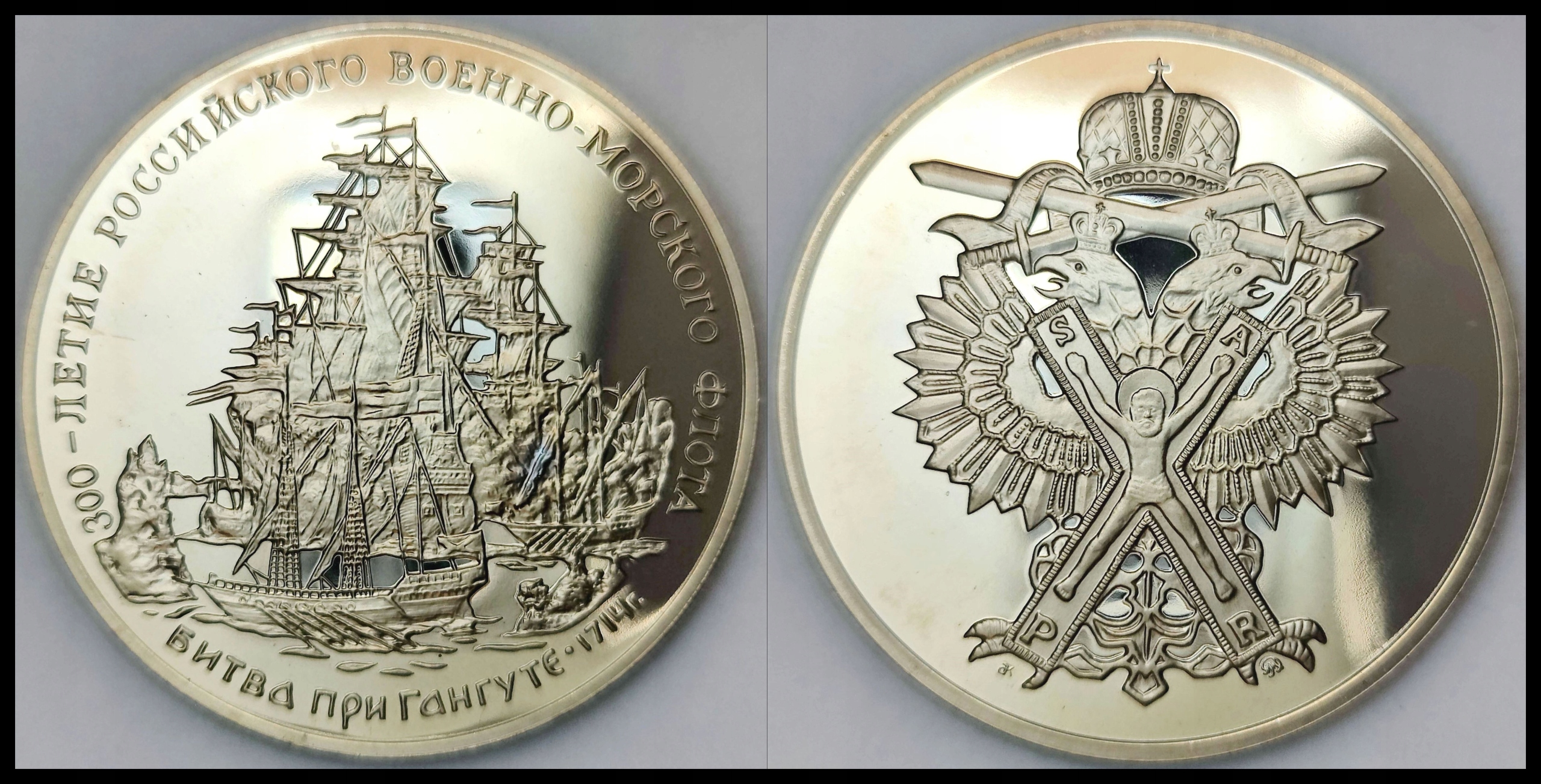 МНБ - РОССИЙСКИЙ НУМИЗМАТ 300-ЛЕТИЕ РОССИЙСКОГО ВОЕННОГО ФЛОТА #ГАНГУТ #st L