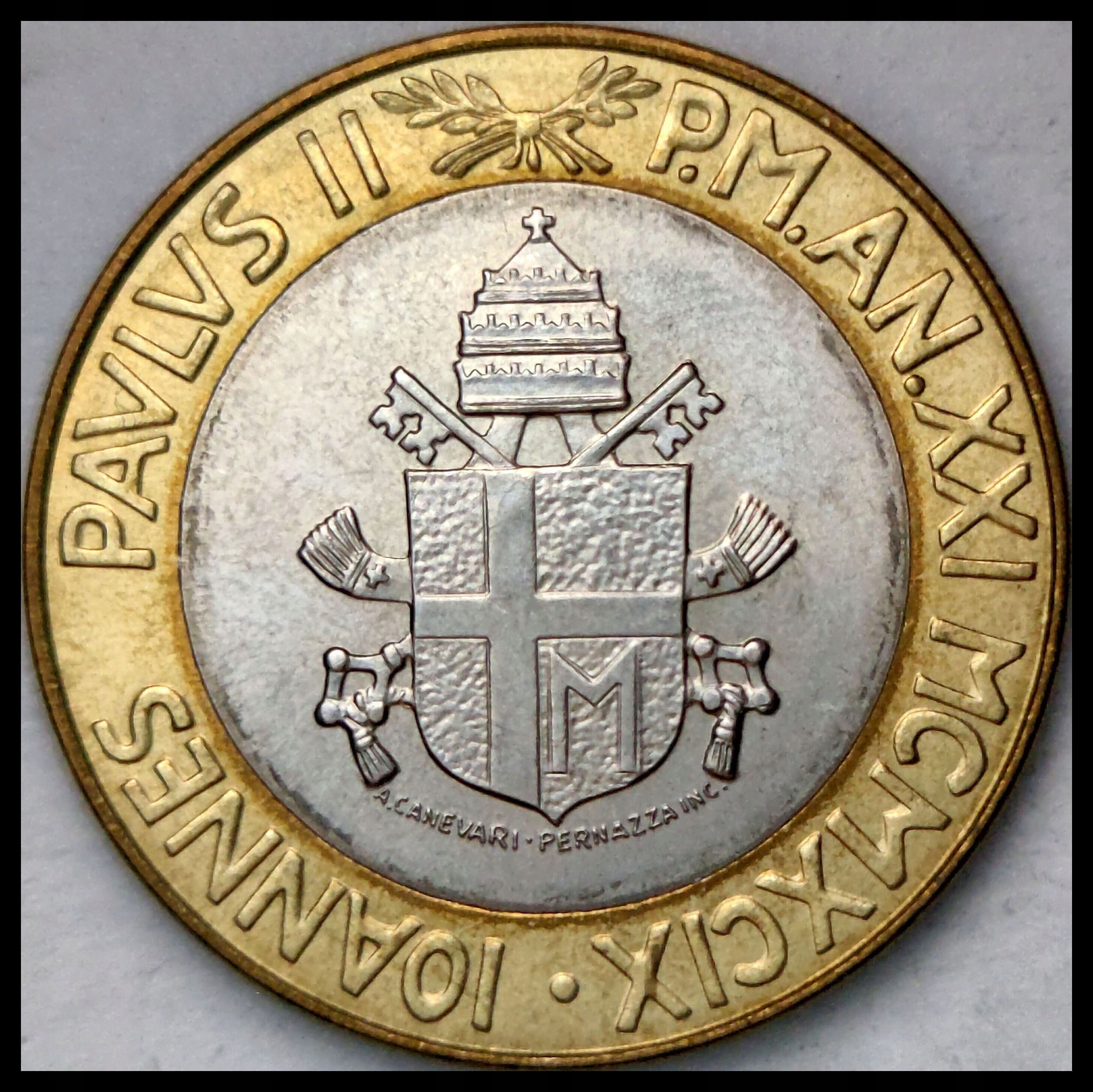 Ватикан h1> Джон Павел II - XXI Год h2> 1000 LiRie 1999 - KM# 311 H2> ST+ALB | Ø 26,9 мм h2> Вес каталога - 8,85 г h2> stan 1 h2>