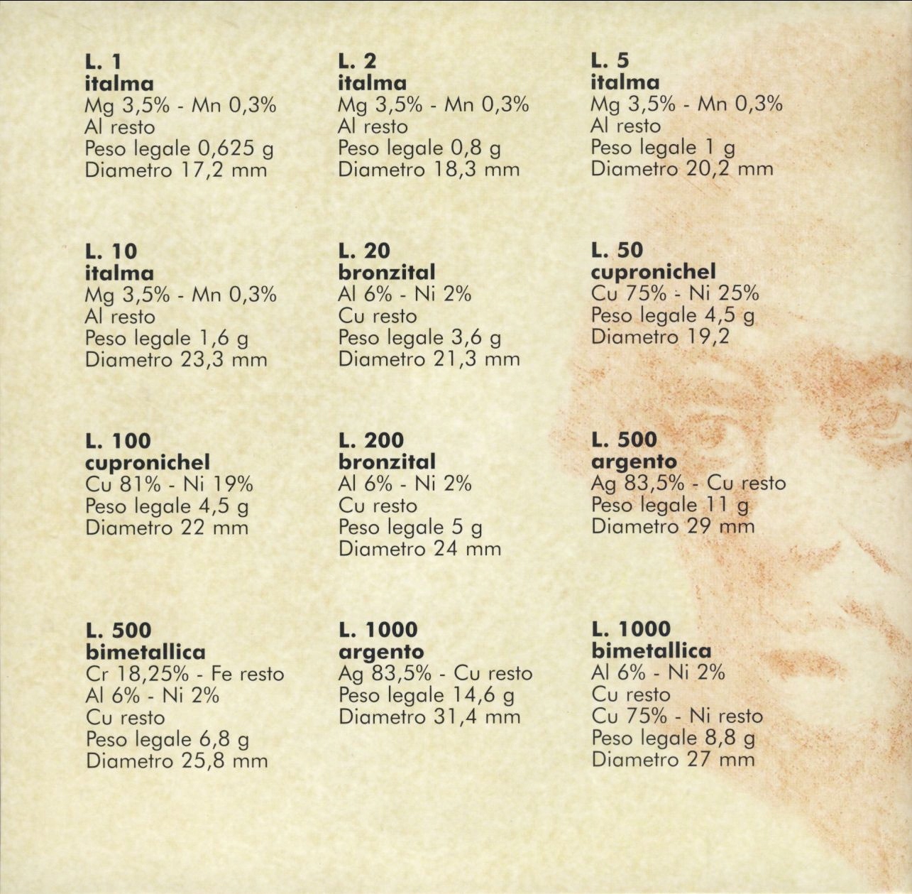 1, 2, 5, 10, 20, 50, 100, 200, 500, 1000 лир