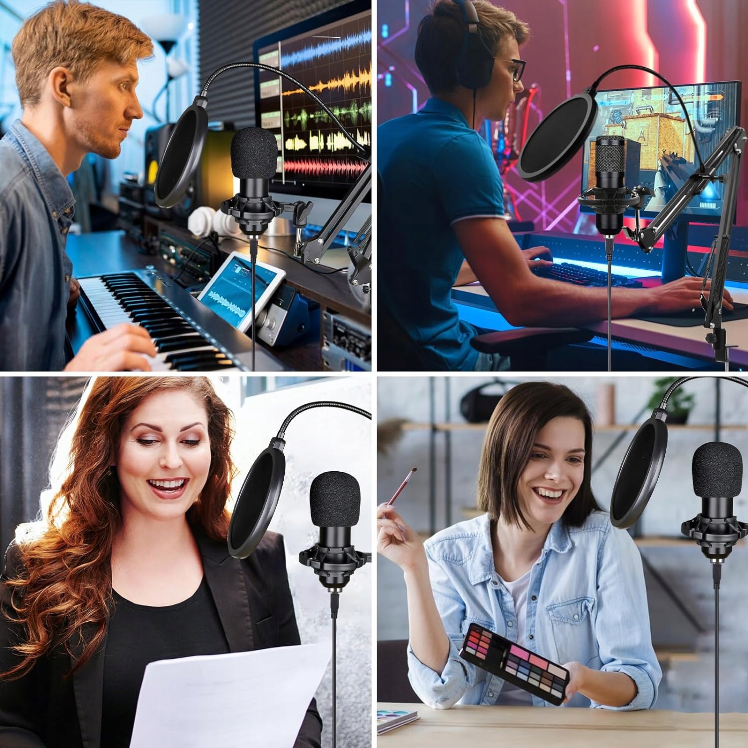 USB Studio Microfone Set предоставляет прямую, удобную комбинацию Plugn и Play с ПК и ноутбуком без дополнительного оборудования для записи вокала, подкастов, Skype, подкастов, лекторов, потокового потока и производства видео на YouTube. Получение высокого качества звука для голоса и компьютерных записей никогда не было проще