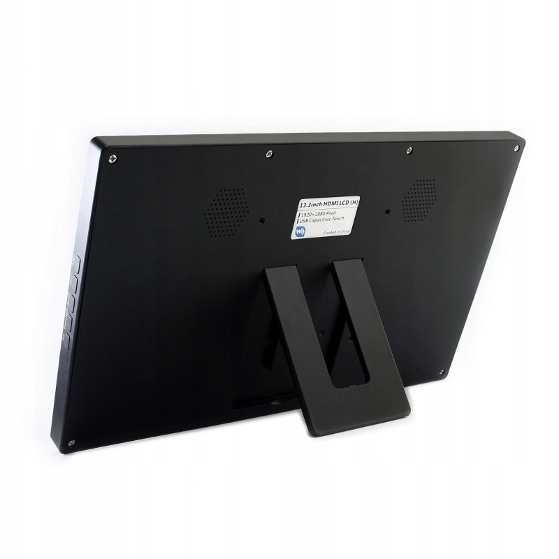 IPS-экран с диагональю 13,3" и разрешением Full HD 1920 x 1080 пикселей с емкостной сенсорной функцией. Связь между дисплеем осуществляется через HDMI и USB. Он покрыт закаленным стеклом твердостью 6H и заключен в черный корпус. Оснащен высококачественным ферритовым динамиком и разъемом mini jack 3,5 мм. Экран совместим с Raspberry Pi 4B/3B+/3B/Zero/. Ноль Вт.