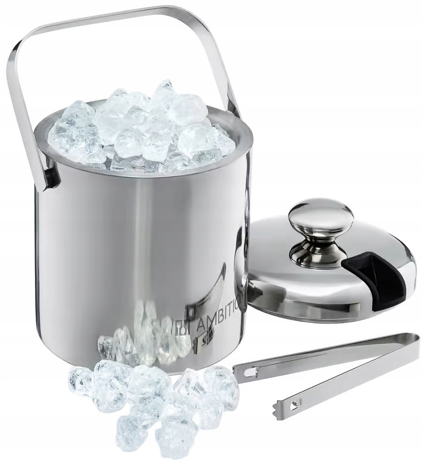 Контейнер для кубиков льда от Ambition. Изготовлен из высококачественной нержавеющей стали с глянцевым покрытием. В комплект входит подходящая крышка, щипцы и сито. Если вы любитель охлажденных напитков и напитков, на вашем столе всегда должна быть емкость для льда. Незаменим на вечеринках, он предотвратит быстрое таяние приготовленного льда. Благодаря этому вам больше не придется каждый раз бежать в морозилку за кубиками льда.