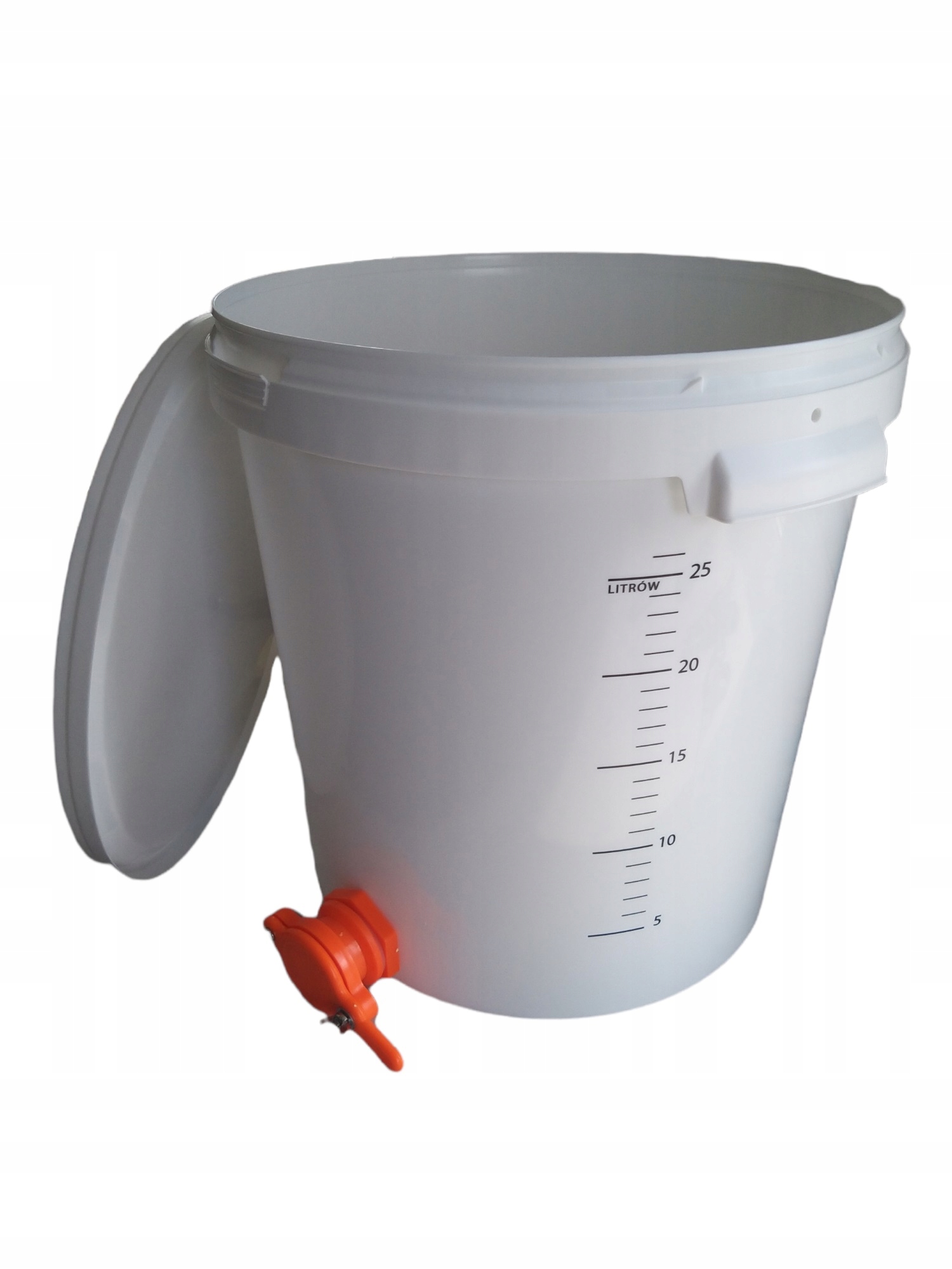 Контейнер оснащен краном с уплотнителями, металлической крышкой и шайбой. отверстие достаточно велико, чтобы обеспечить беспрепятственный поток густых жидкостей - меда, мякоти и т. д.