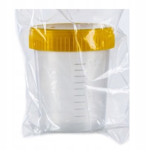 Стерильный контейнер для анализа мочи с крышкой фирмы Bene. Контейнер предназначен для периодических лабораторных исследований.
