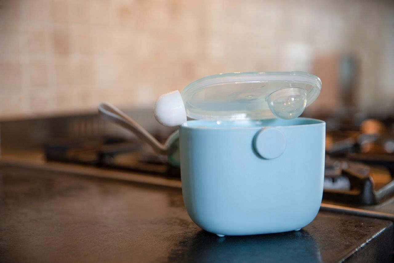 Он имеет уникальную форму, а весь дизайн и цвета сочетаются с другими аксессуарами линии для детского питания. Контейнер емкостью 500 мл имеет двойную герметичную крышку. Оснащен удобной ложкой/молочником. Это гарантирует высочайшую гигиену, а герметичность крышки предотвратит высыпание влаги или сухого молока. Кроме того, ложка помещается в отдельный отсек. Контейнер стерилизуем и изготовлен из полипропилена. Он имеет удобную силиконовую ручку для переноски, а также может использоваться для хранения различных закусок и лакомств.