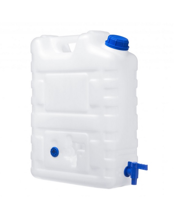 Объем - 20л, цвет - бесцветный, цвет фурнитуры - синий, диаметр заливной горловины [мм] - 43, диаметр сливного отверстия [дюйм] - 1/2, высота [мм] - 485, размеры основания [мм] - 380 х 160.