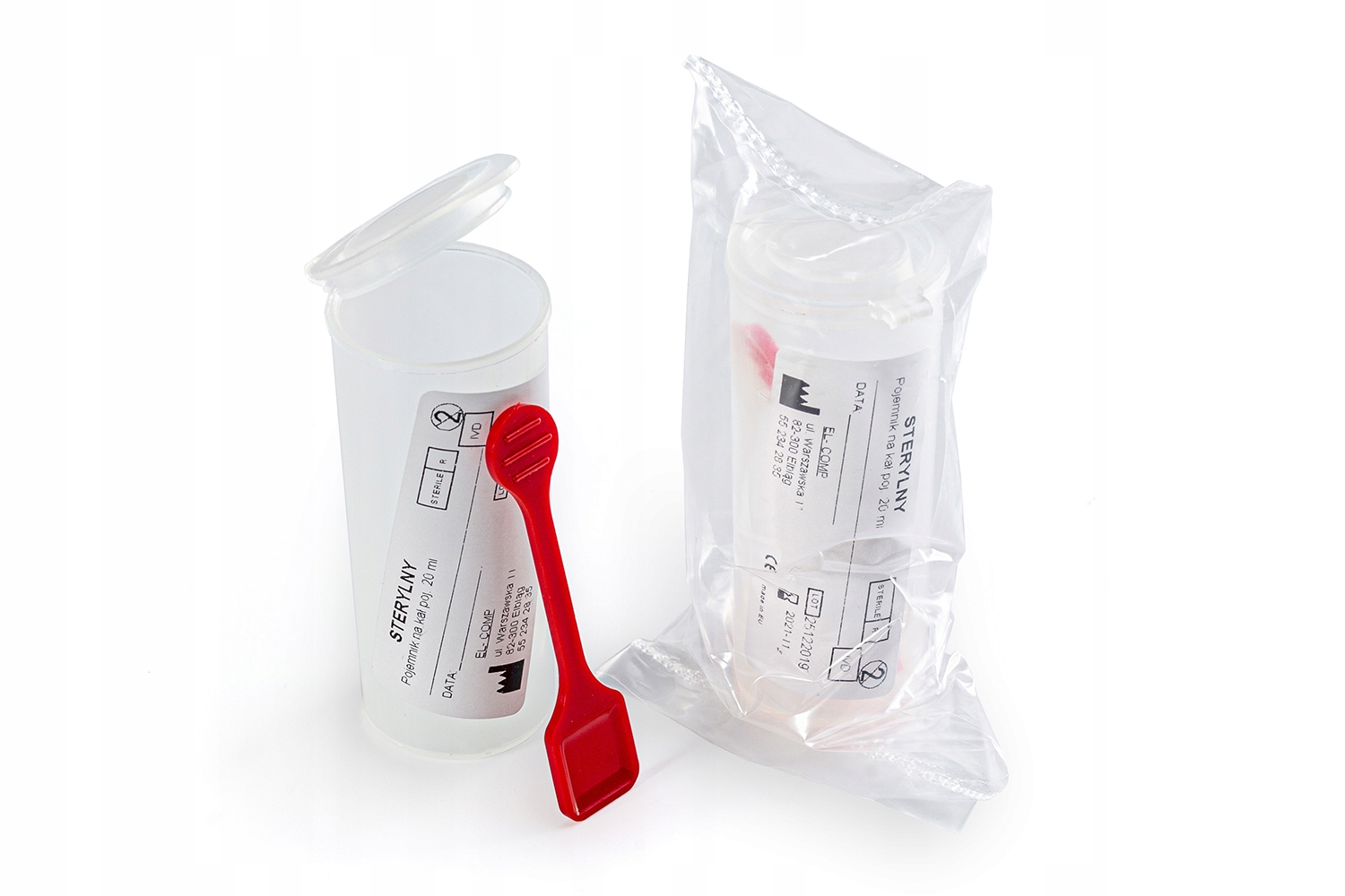 Контейнер стерильный для кала, мочи емкостью 20 мл с лопаточкой