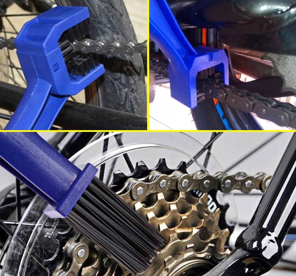 Многозадачная щетка, разработанная специально для чистки цепи, велосипеда, мотоцикла. Благодаря своей конструкции щетка позволяет быстро очистить цепь, не снимая ее.