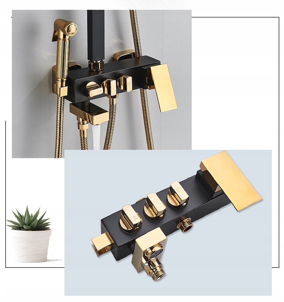 МНОГОФУНКЦІОНАЛЬНИЙ ЗМІШУВАЧ ДЛЯ ДУШУ ЧОРНИЙ І ЗОЛОТИЙ v2
