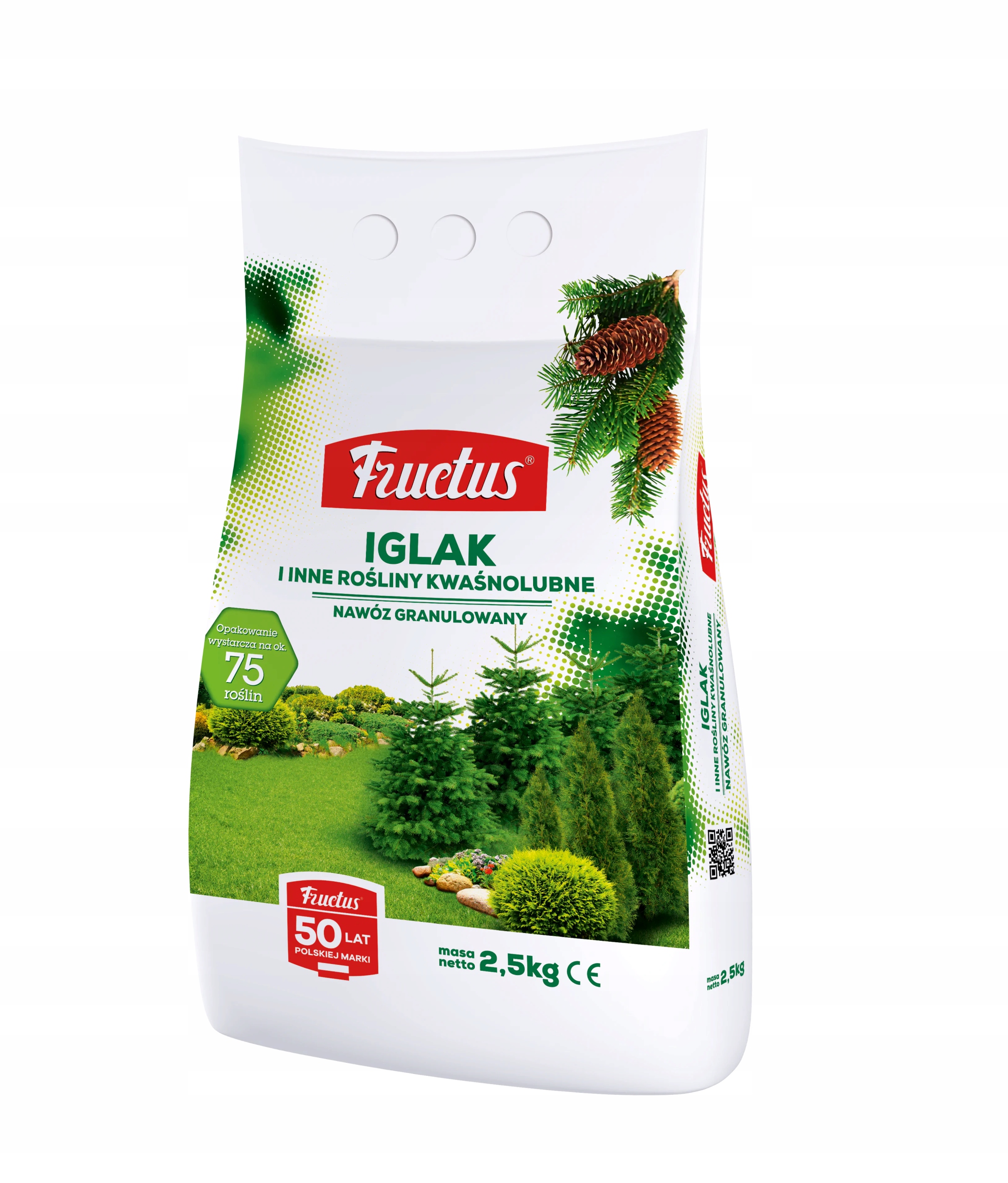 Удобрение Fructus для хвойных растений отлично подходит для хвойных растений, таких как сосна, пихта, ель, лиственница, тис, туя, можжевельник и других кислолюбивых растений – рододендронов, вереска и азалии, а также других декоративные деревья и кустарники. Продукт содержит высокую дозу макро- и микроэлементов, обеспечивающих оптимальный и здоровый рост растений. Содержание железа и магния обеспечивает интенсивный цвет кустов. Удобрение повышает зимостойкость растений и предотвращает побурение хвои.