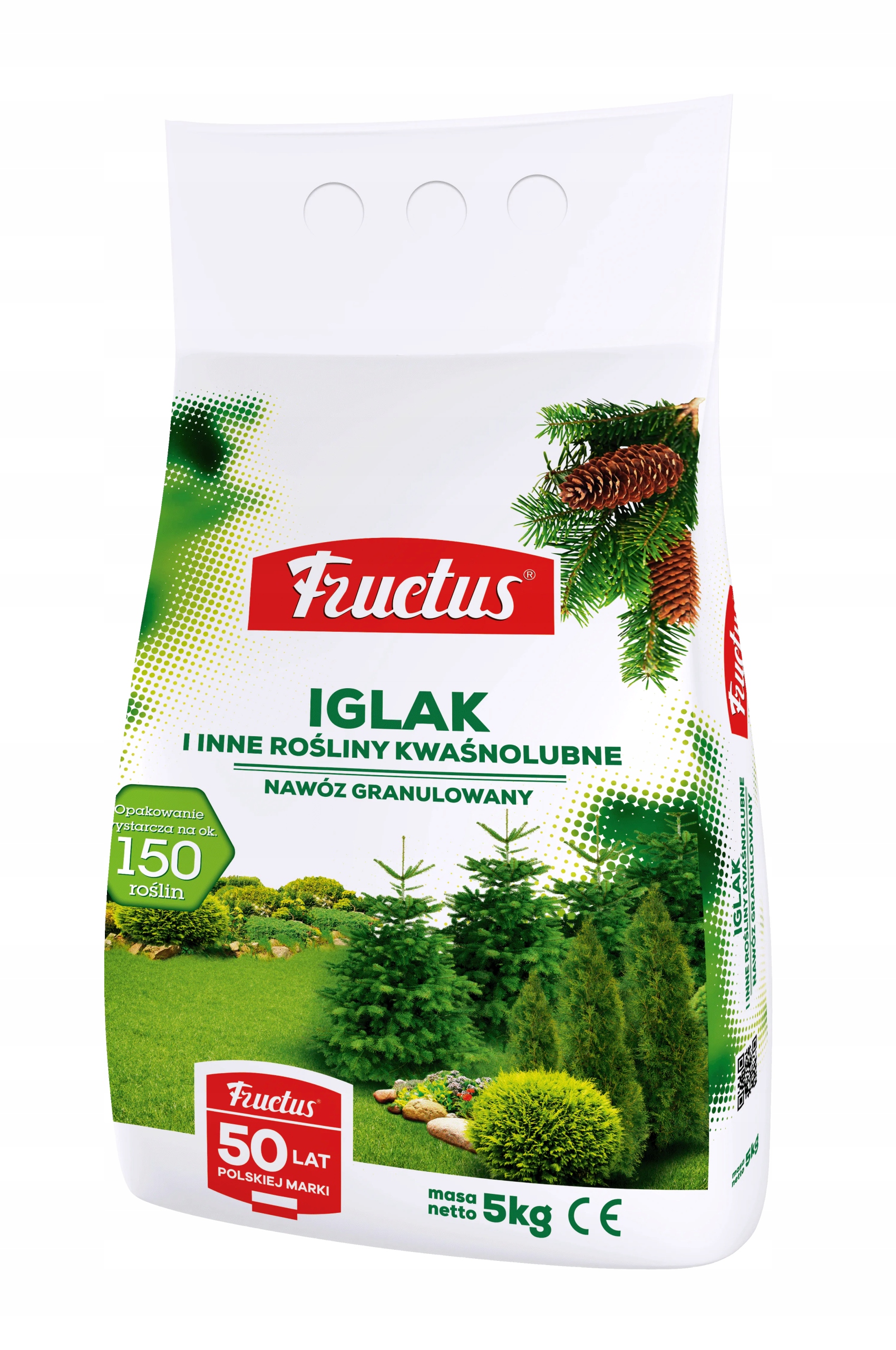 Многокомпонентное гранулированное удобрение марки Fructus, предназначенное для подкормки хвойных растений, предпочитающих кислую реакцию почвы.