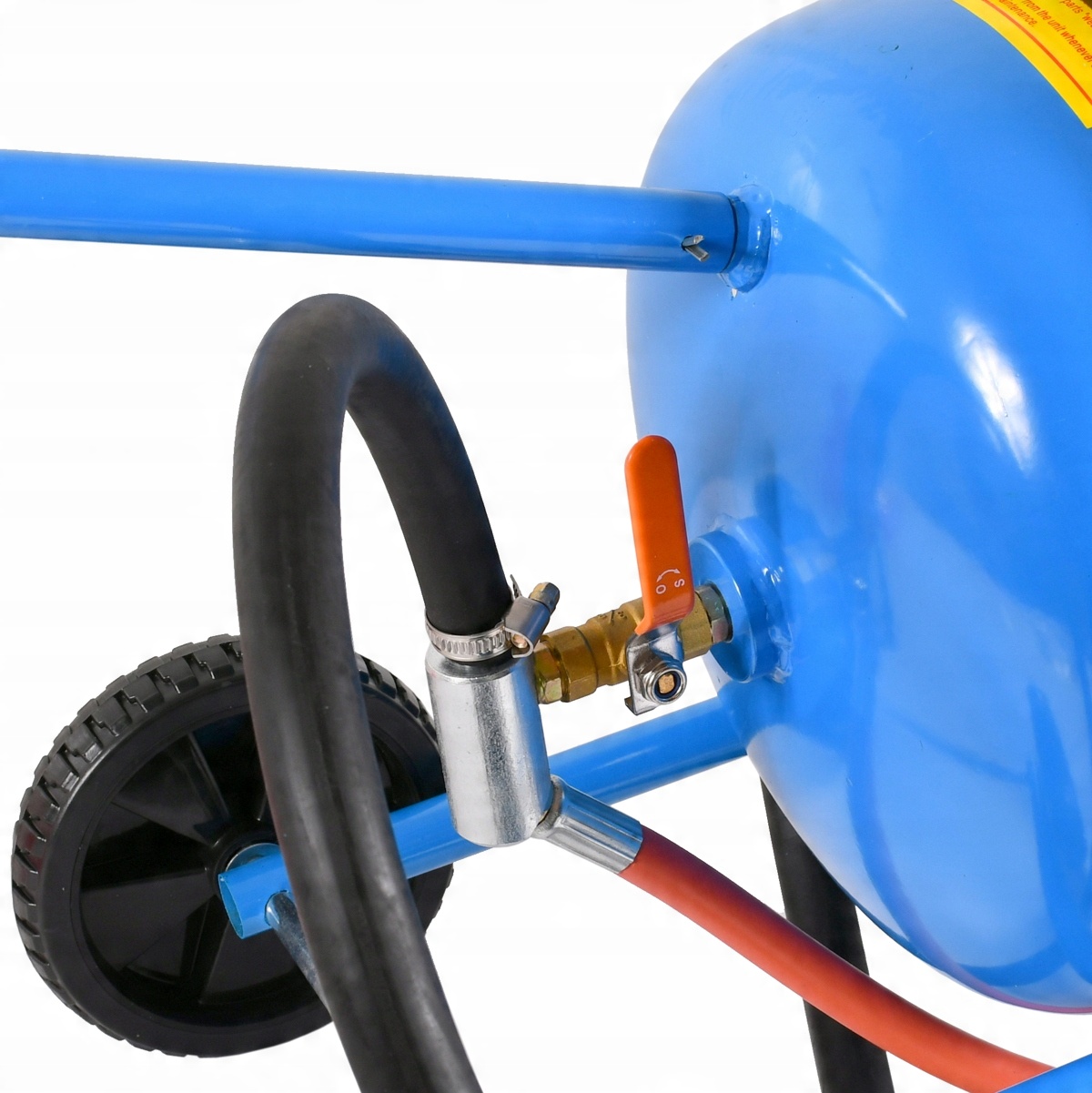 Пескоструйный аппарат оснащен резиновыми колесами и удобными ручками, облегчающими его перемещение и повышают комфорт оператора.