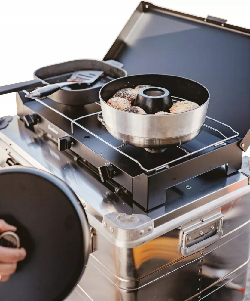 Походная печь Enders — универсальный спутник в путешествии, который позволяет готовить еду разными способами — от запеканок до хлеба и пирожных. Это легкое и компактное устройство изготовлено из прочных материалов, поэтому его можно использовать очень долго. Выпечка происходит непосредственно на газовой или походной плите и работает по принципу, аналогичному классической духовке, благодаря чему запеканки или пирожные пропекаются равномерно со всех сторон. Благодаря закрытой форме духовка потребляет мало энергии, в отличие от походных грилей. Духовка позволяет легко и за несколько минут приготовить разнообразные блюда для всей семьи в кемпинге, на лодке, на участке земли и в любом месте, где нет традиционной печи.