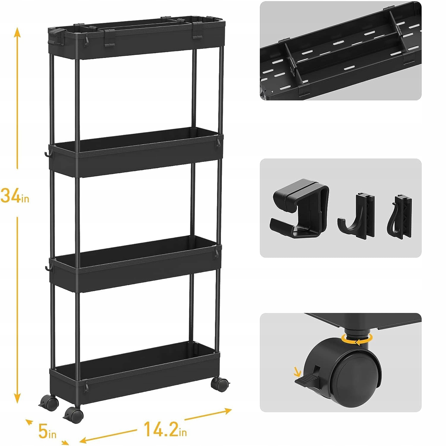 - Универсальное использование: 🏠 Коляска может быть помещена на кухню, гостиную, ванную комнату, офис или другие комнаты, она идеально подходит для хранения ежедневных потребностей, специй, косметики, книг и других. 2/3/4-уровневой, после удаления колес.