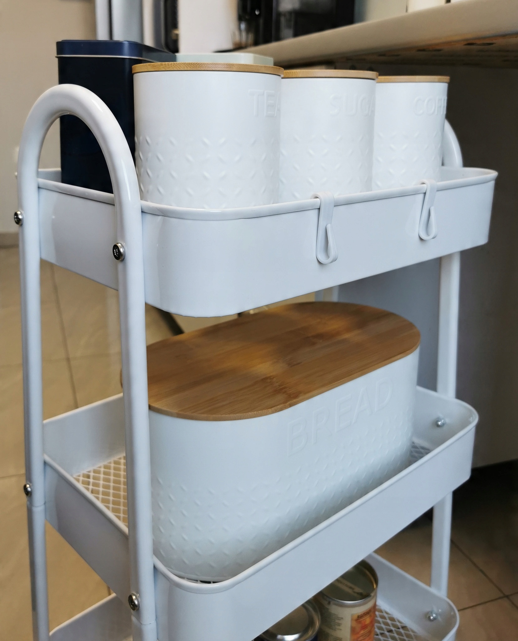 МОБИЛЬНАЯ ПОЛКА 3 ПОЛКИ КУХНЯ ВАННАЯ СТОЛ МЕТАЛЛ ТЕЛЕЖКА 79 СМ БЕЛАЯ