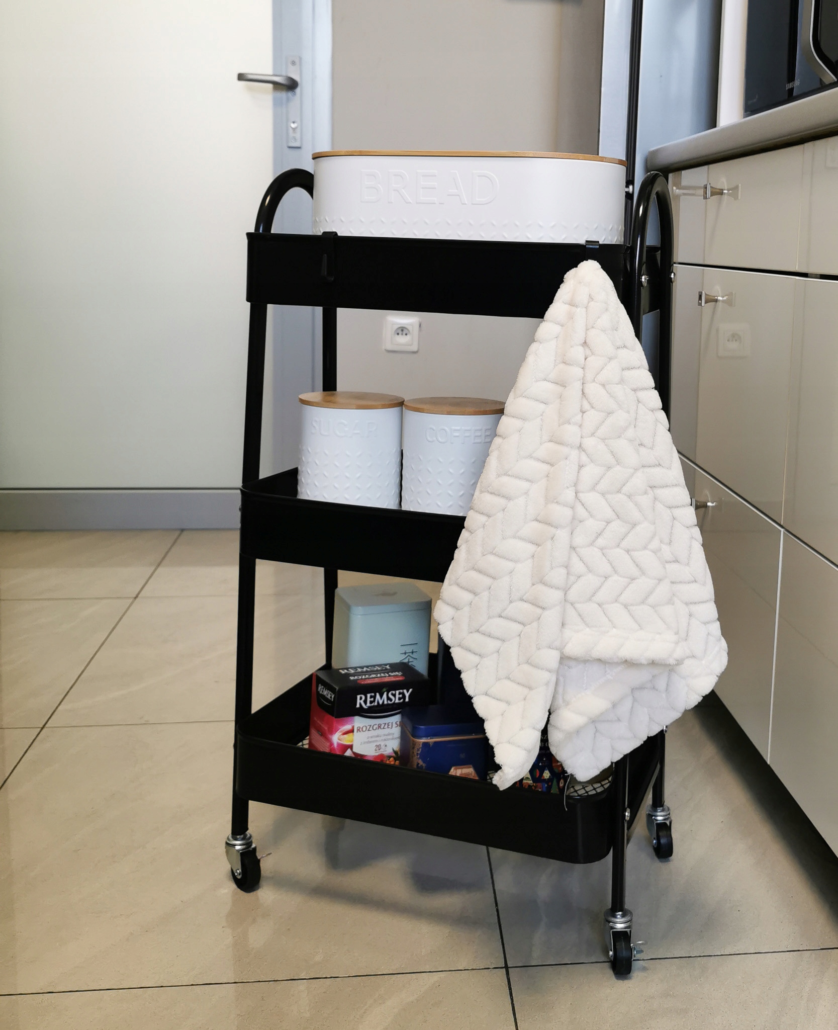 МОБІЛЬНА ПОЛИЦЯ 3 ПОЛИЦІ КУХОННИЙ СТІЛ НА КОЛЕСАХ ЧОРНИЙ ВОЗИК