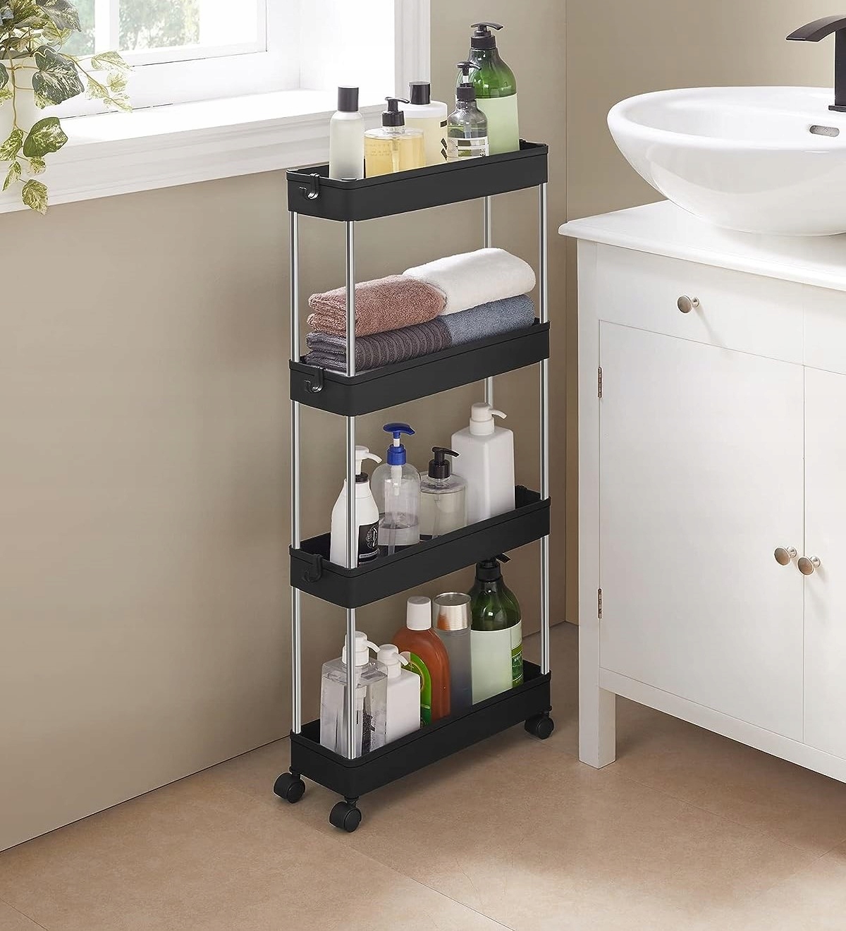 Больше никакого беспорядка! Практичная четырехуровневая полка на колесиках. Он отлично будет работать в вашем доме. В них можно хранить кухонные и ванные принадлежности, а также мелкие аксессуары. Благодаря универсальному дизайну он отлично впишется в любой интерьер.